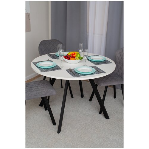 Стол круглый кухонный нераздвижной Дельта К-1 БЛ 94 ЧР, столешница ЛДСП, нераскладной, белый