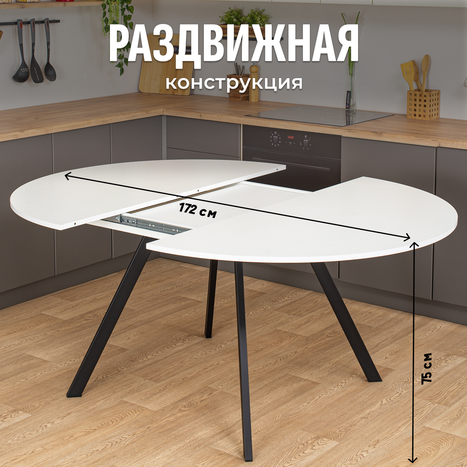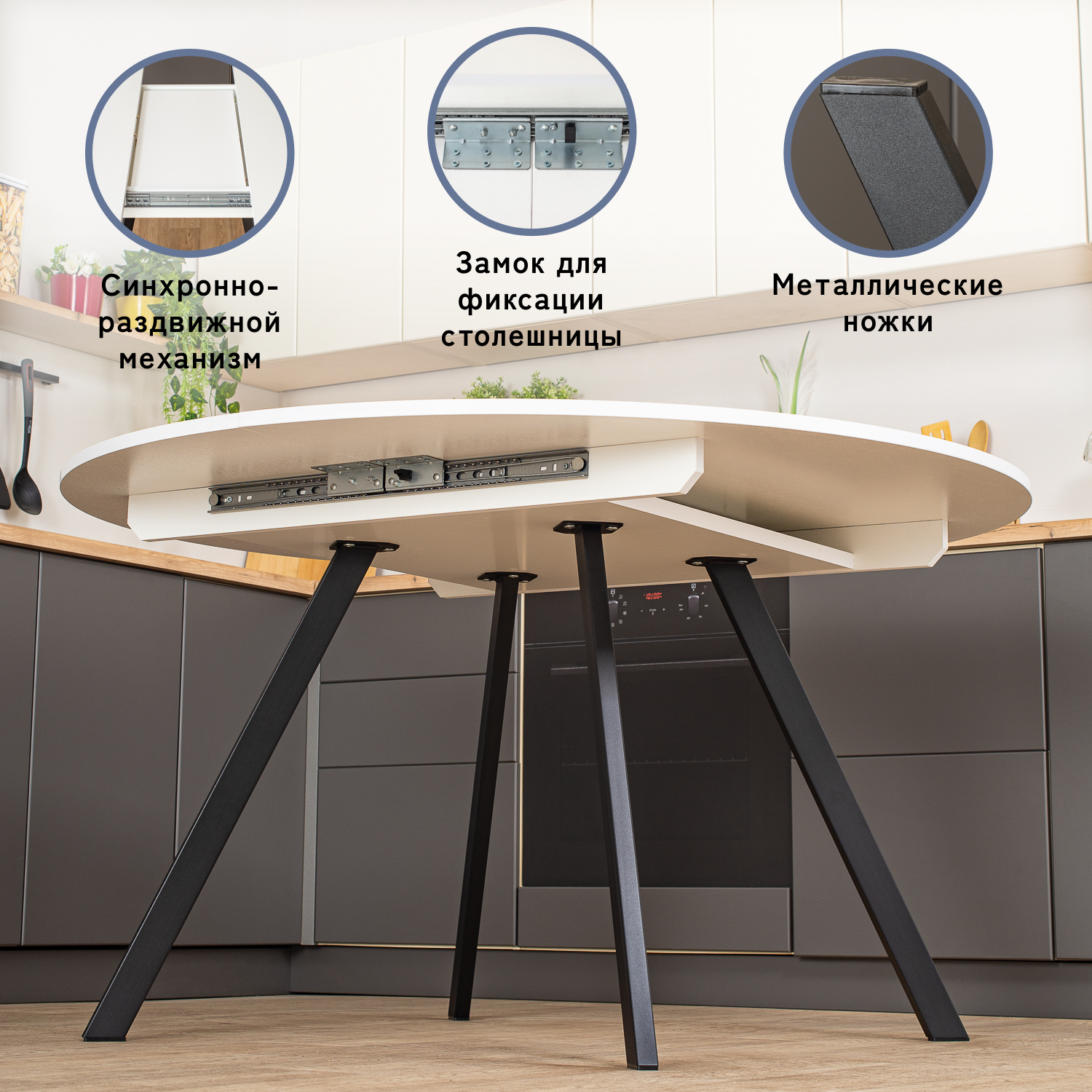 Стол круглый кухонный раздвижной Вита К-3 Бел 95 ЧР, столешница ЛДСП, раскладной, белый, черный: сравнение цен, характеристики, фото, актуальное наличие и цены.