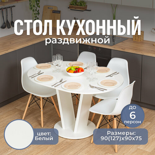 Стол круглый кухонный раздвижной Вита К Бел 03 Бел, обеденный на тумбе, раскладной, белый: сравнение цен, характеристики, фото, актуальное наличие и цены.