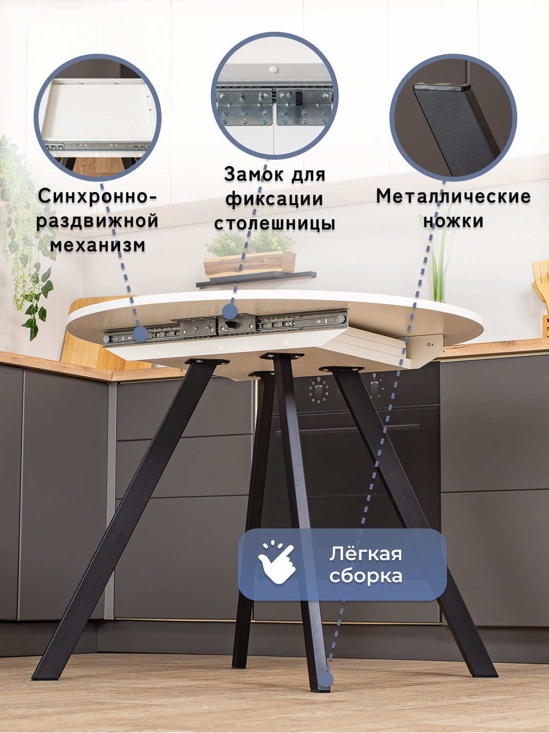 Стол круглый кухонный раздвижной Вита К БЛ 95 ЧР, столешница ЛДСП, раскладной, белый, черный: сравнение цен, характеристики, фото, актуальное наличие и цены.