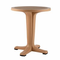 Стол пластиковый круглый "Прованс" с имитацией структуры дерева. Диаметр столешницы - 65 см. Выполнен из прочного пластика, не боится солнца, дождя и перепадов температур, легко моется. Крепление столешницы - центральное. Стол на одной ноге с крестообразной опорой. Ножки стола имеют четыре регулируемые пластиковые опоры, которые позволяют горизонтально поставить стол на любых поверхностях. Стол сборно-разборный (можно разобрать и убрать на зимнее хранение). Размер изделия в разложенном виде: 65х65х74 (ДхШхВ) см. Максимальная нагрузка: 100 кг.