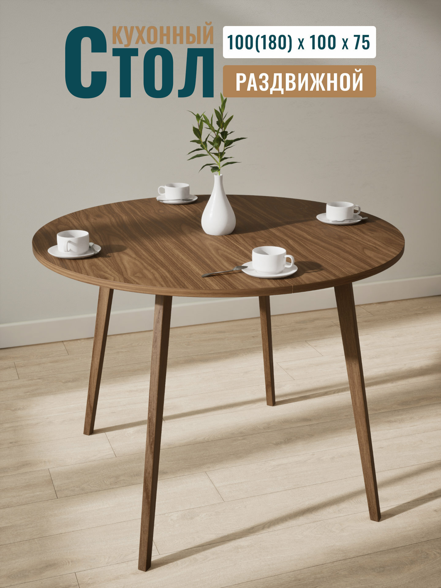 Купить Стол круглый раздвижной кухонный обеденный STROGANINI 3 в 1 деревянный из массива дерева 100(180)х100х75 см с доставкой по всей России.