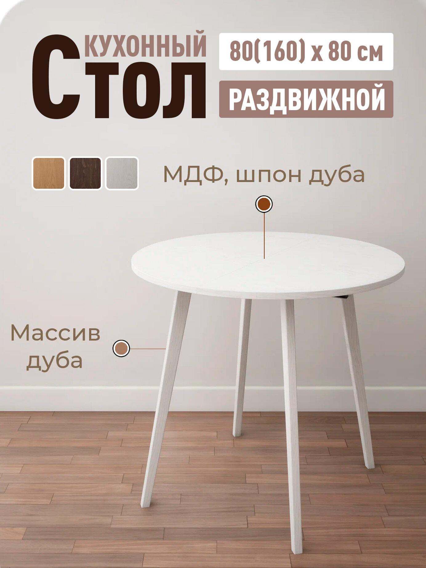 Стол круглый раздвижной кухонный обеденный STROGANINI 3 в 1 деревянный из массива дуба 80(160)х80х75 см: сравнение цен, характеристики, фото, актуальное наличие и цены.