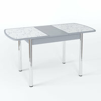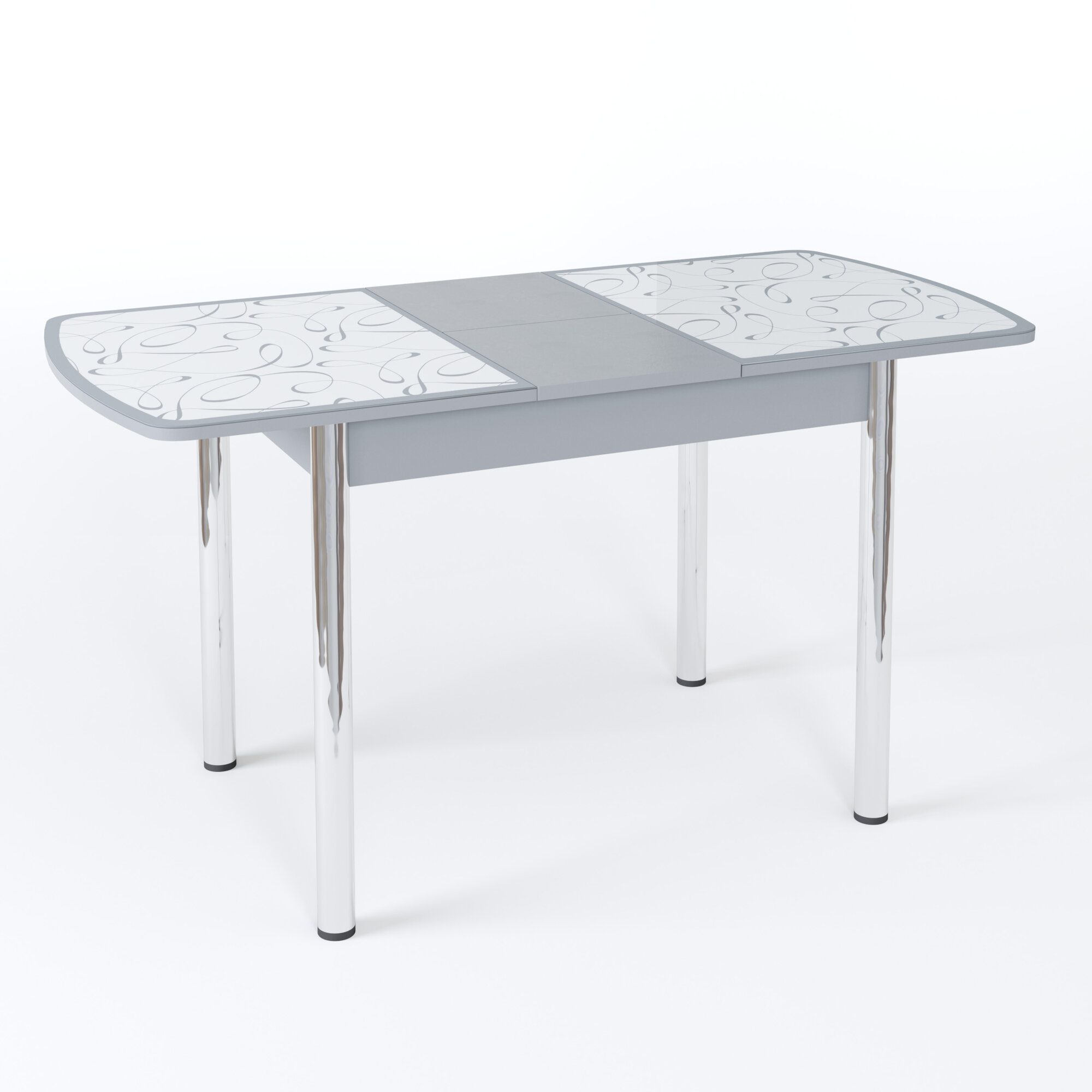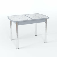 Купить Стол кухонный, Чикаго серый, стекло, глянцевое, с узором, ноги прямые хром, гальваника, полуовальный, раскладной, механизм бабочка с доставкой по всей России.
