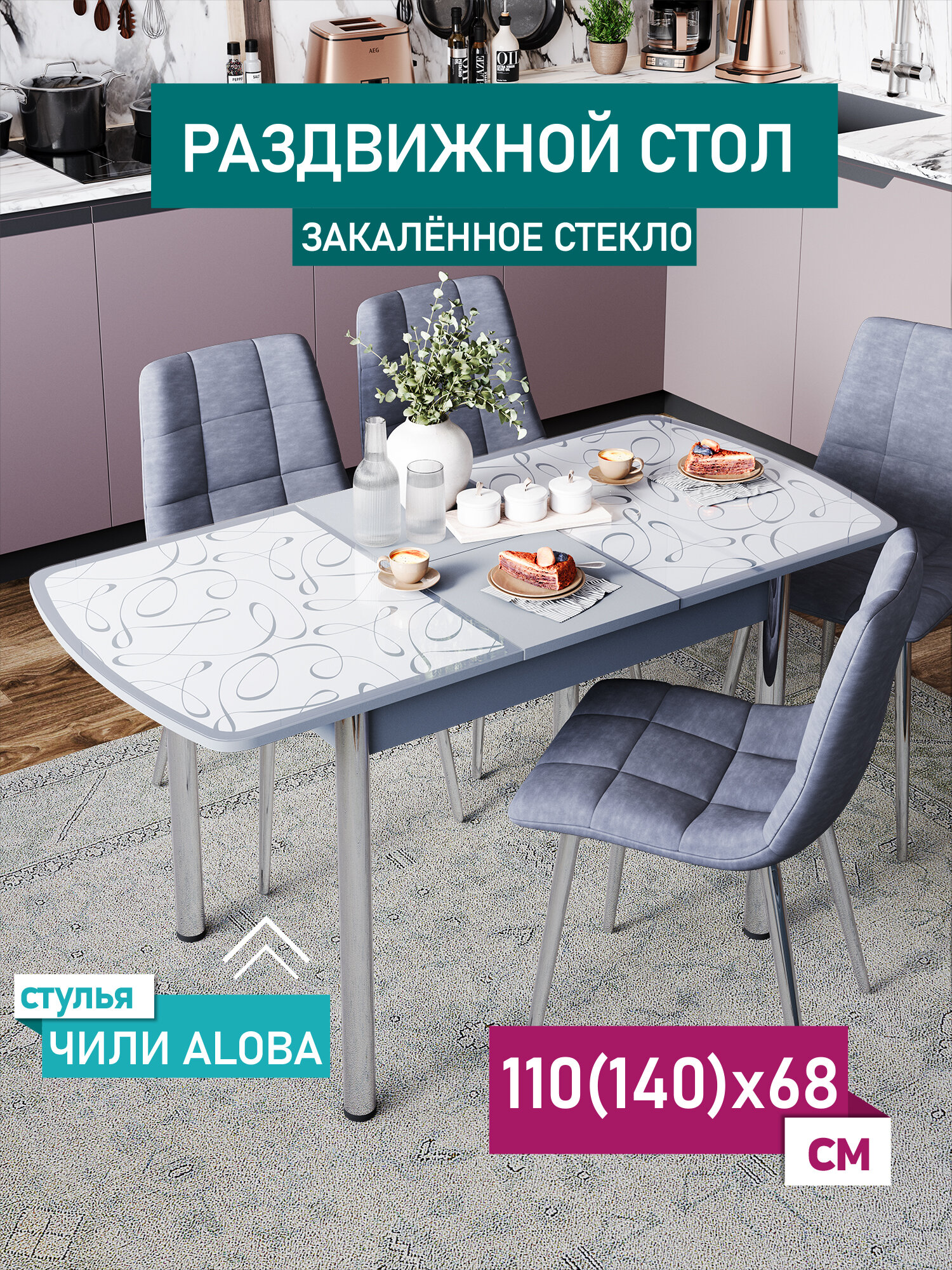 Стол кухонный, Чикаго серый, стекло, глянцевое, с узором, ноги прямые хром, гальваника, полуовальный, раскладной, механизм бабочка: сравнение цен, характеристики, фото, актуальное наличие и цены.