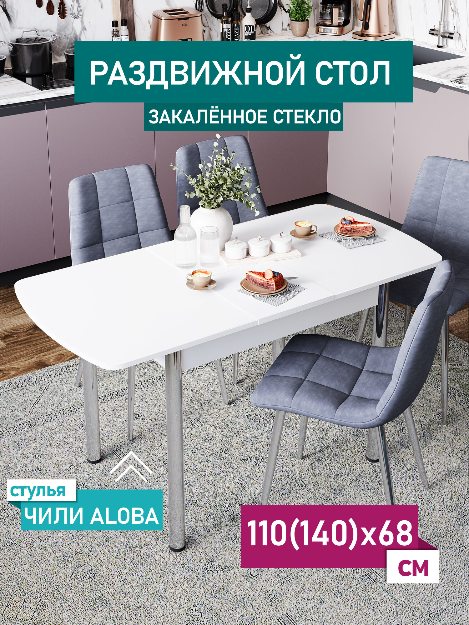 Стол кухонный, Чикаго, столешница со стеклом, белое, матовое, ножки прямые хром, раскладной, 110 (140)х68 см: сравнение цен, характеристики, фото, актуальное наличие и цены.