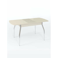 Стол кухонный, Чикаго, стекло бежевое, глянцевое, ноги гнутые хром, гальваника, полуовальный, раскладной, механизм бабочка