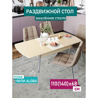 Купить Стол кухонный, Чикаго, стекло бежевое, глянцевое, ноги гнутые хром, гальваника, полуовальный, раскладной, механизм бабочка с доставкой по всей России.
