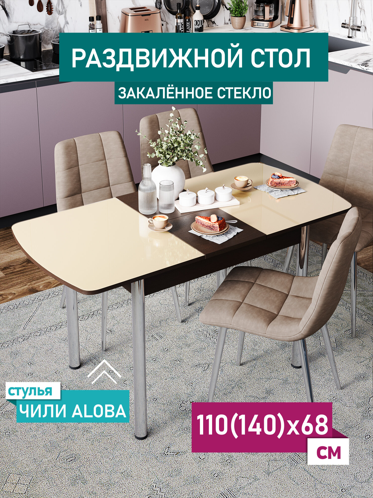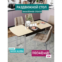 Стол кухонный Чикаго, столешница со стеклом, бежевое, глянцевое, ножки прямые хром, раскладной, 110 (140)х68 см: сравнение цен, характеристики, фото, актуальное наличие и цены.