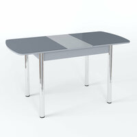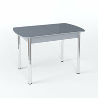 Купить Стол кухонный, Чикаго, стекло графит, глянцевое, ноги прямые хром, гальваника, полуовальный, раскладной, механизм бабочка с доставкой по всей России.