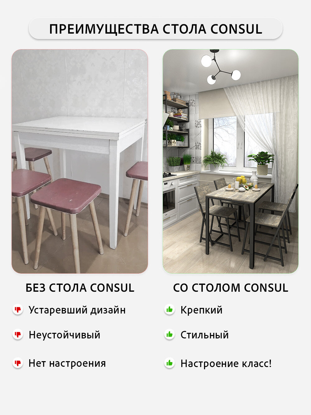 Стол кухонный CONSUL, серый, обеденный, нераскладной, 120х60х75 см, гростат: сравнение цен, характеристики, фото, актуальное наличие и цены.