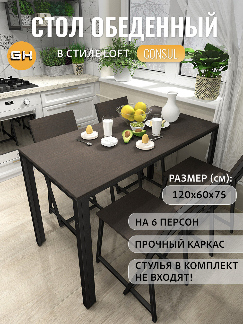Купить Стол кухонный CONSUL, темно-коричневый, обеденный, нераскладной, 120х60х75 см, гростат с доставкой по всей России.