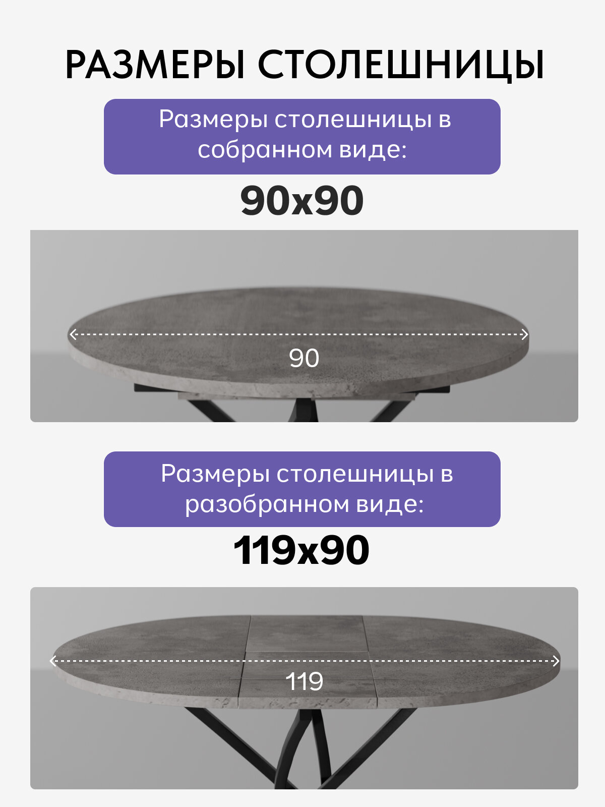 Стол кухонный Divan24 «Юта», раздвижной, круглый, влагостойкое покрытие, серый: сравнение цен, характеристики, фото, актуальное наличие и цены.