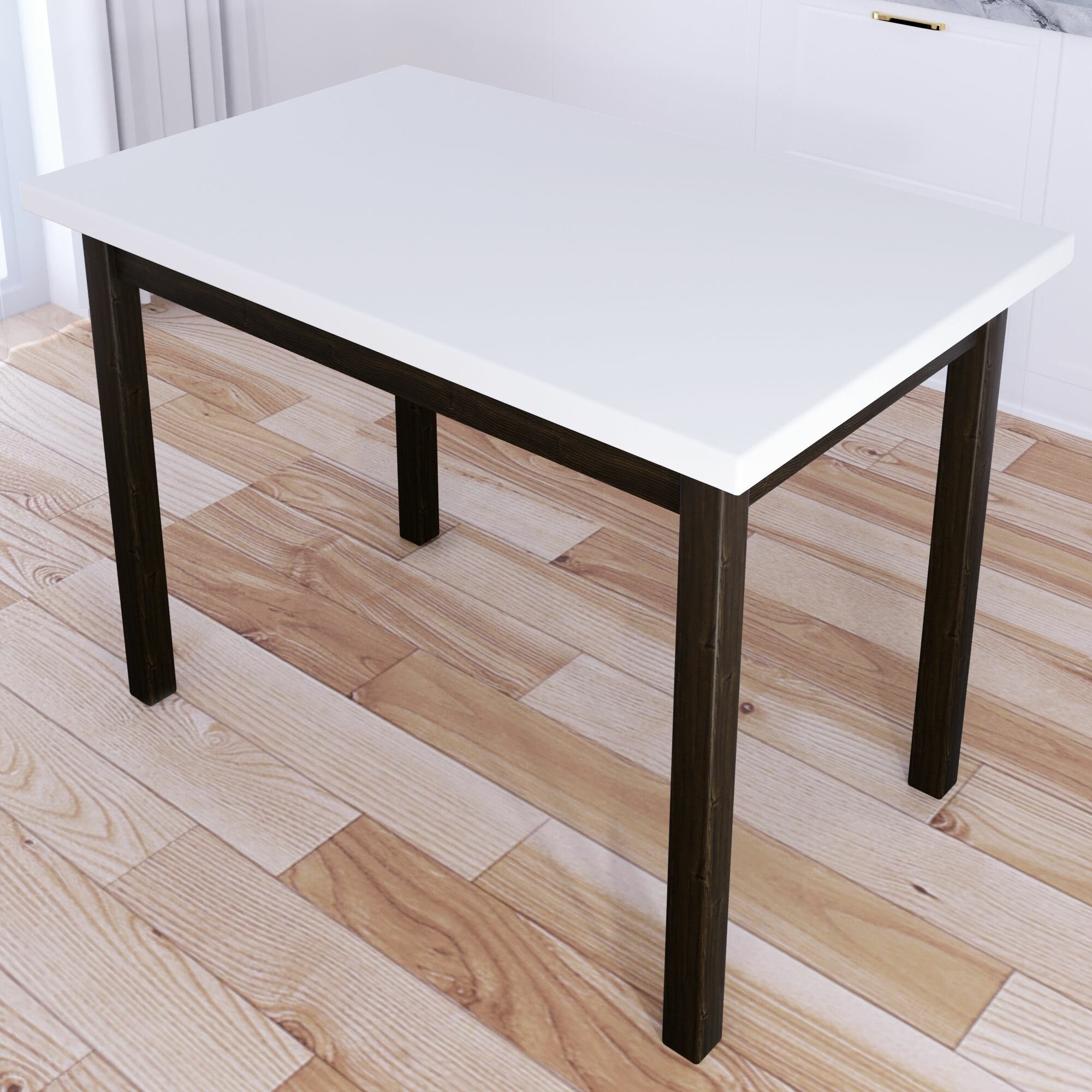 Купить Стол кухонный Классика из массива сосны, 70х40х76 см, белая столешница 40 мм и ножки цвета темного дуба с доставкой по всей России.