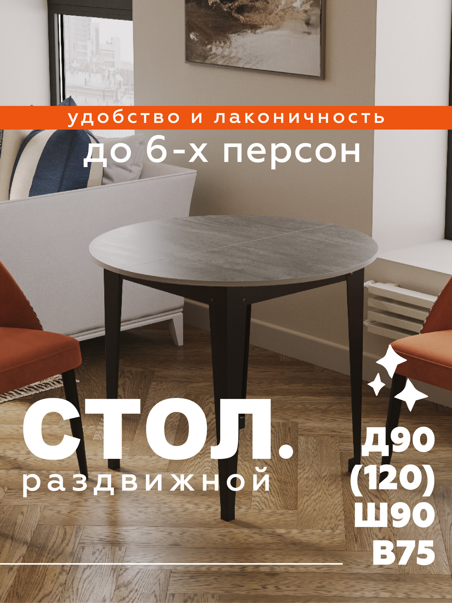 Стол кухонный круглый раздвижной Donini R 75 Бетон. Стол обеденный раздвижной / раскладной, кухонный стол.: сравнение цен, характеристики, фото, актуальное наличие и цены.