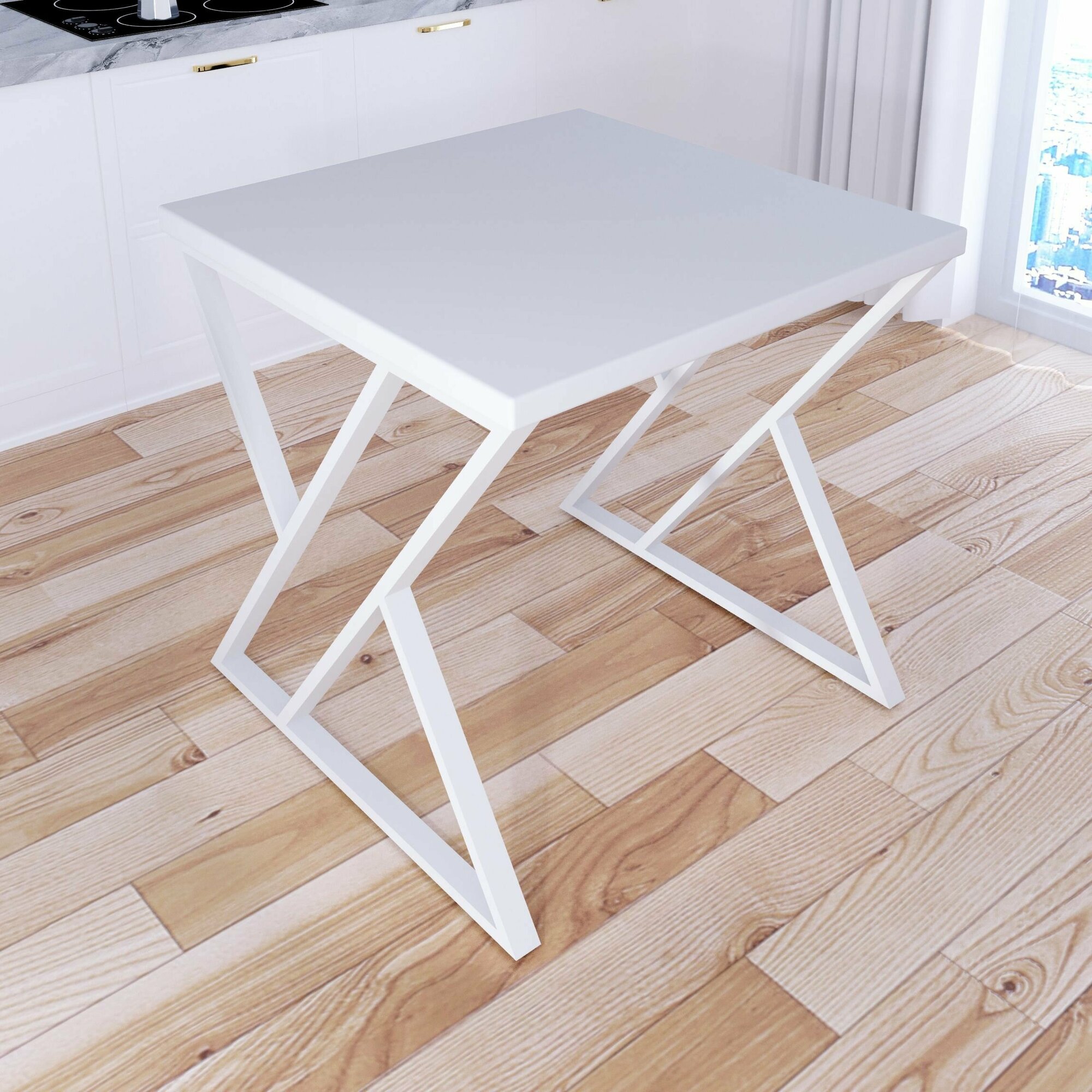 Стол кухонный Loft с квадратной белой столешницей из массива сосны 40 мм и белыми металлическими Z-образными ножками, 70×70х75 см: сравнение цен, характеристики, фото, актуальное наличие и цены.