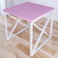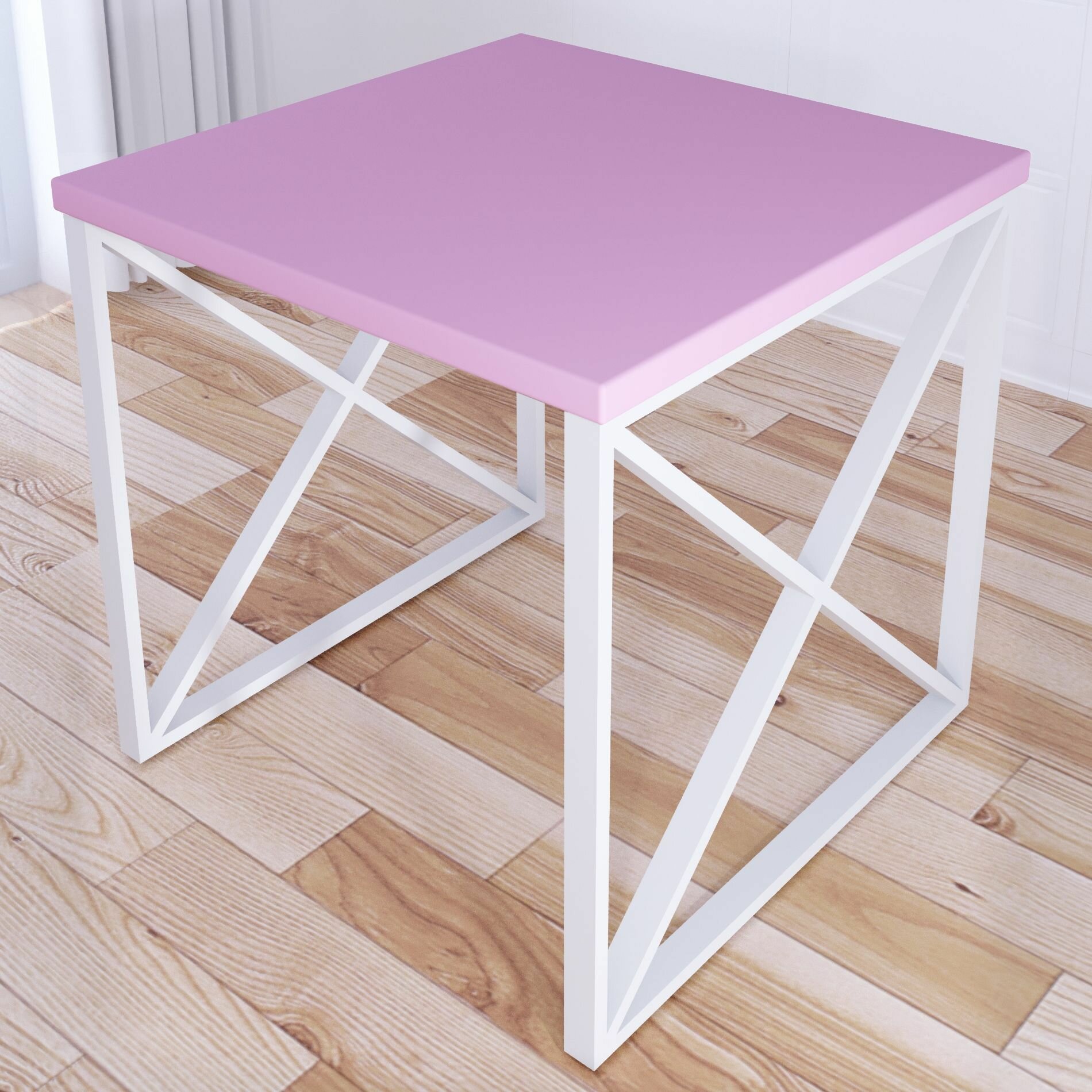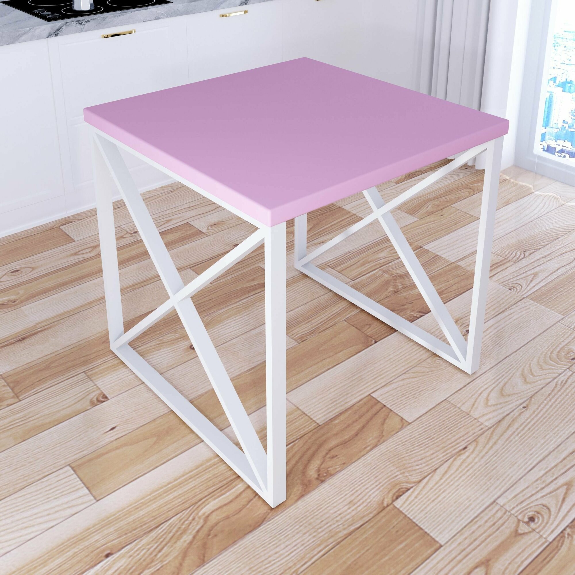 Купить Стол кухонный Loft с квадратной столешницей розового цвета из массива сосны 40 мм и белыми металлическими крестообразными ножками, 80×80х75 см с доставкой по всей России.