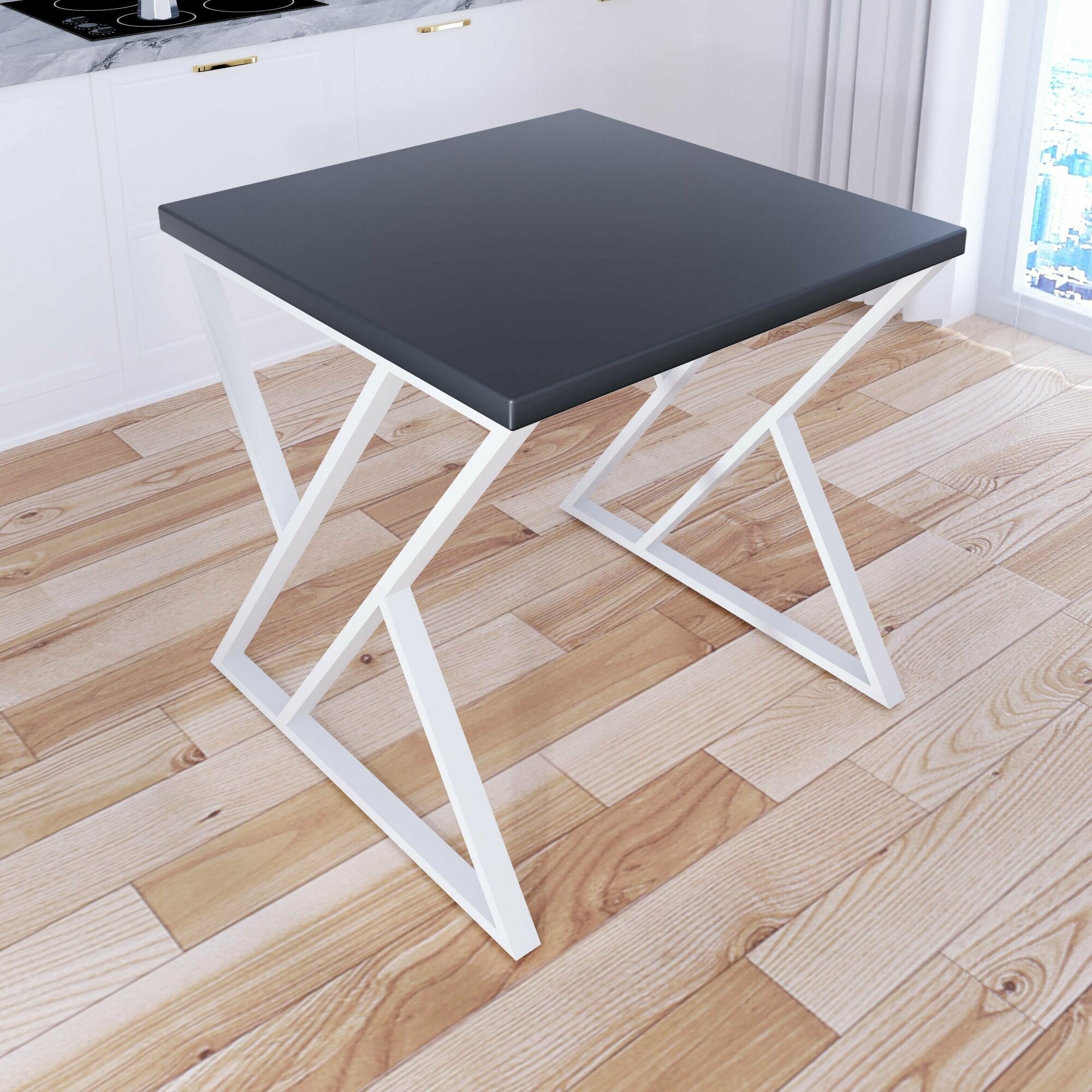Стол кухонный Loft с квадратной столешницей цвета антрацит из массива сосны 40 мм и белыми металлическими Z-образными ножками, 60×60х75 см: сравнение цен, характеристики, фото, актуальное наличие и цены.