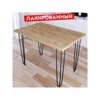 Купить Стол кухонный Loft с лакированной столешницей из массива сосны 40 мм на черных металлических ножках-шпильках, 110×75х75 см с доставкой по всей России.