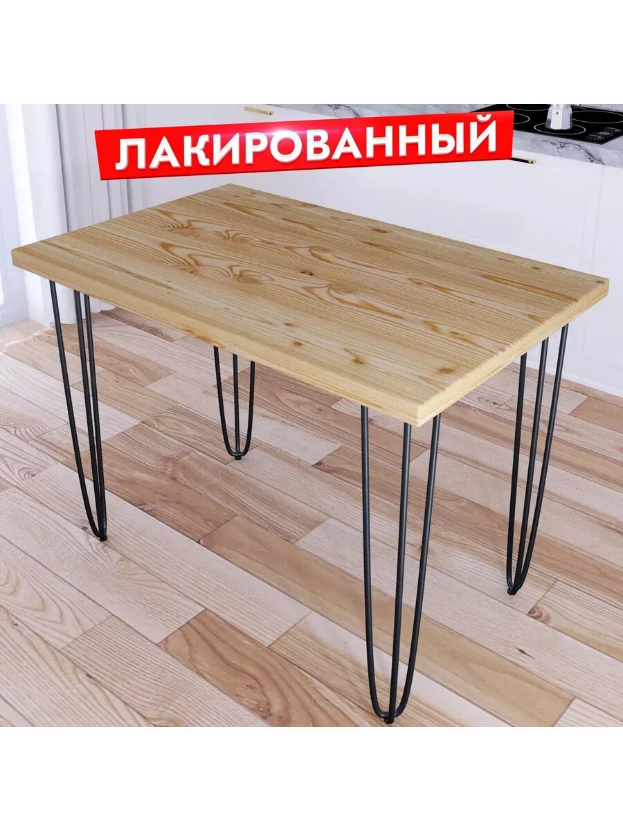 Стол кухонный Loft с лакированной столешницей из массива сосны 40 мм на черных металлических ножках-шпильках, 110×75х75 см: сравнение цен, характеристики, фото, актуальное наличие и цены.