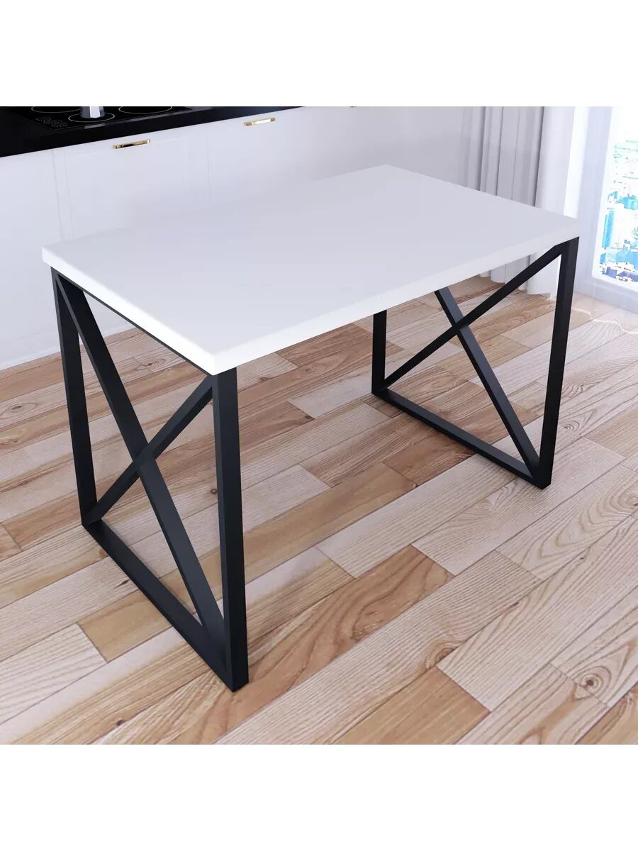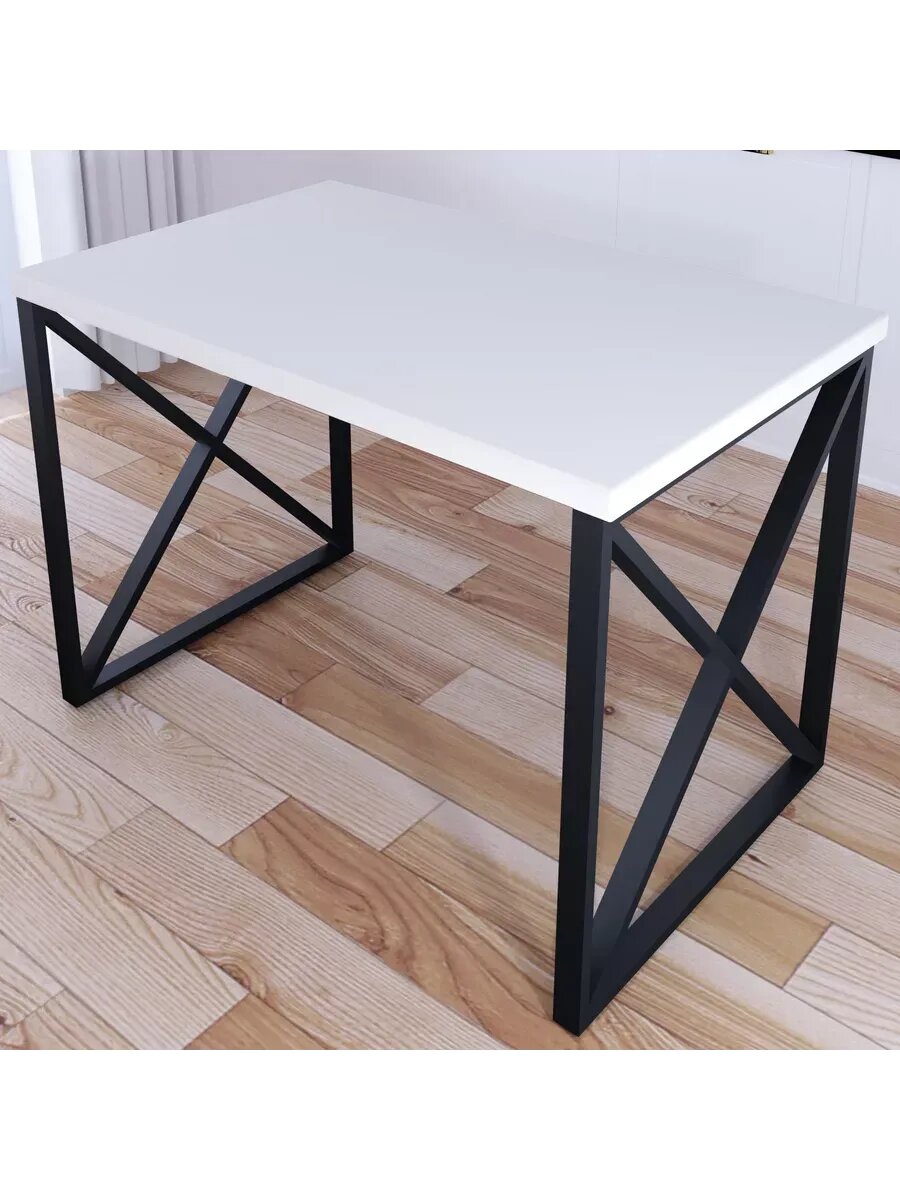 Стол кухонный Loft со столешницей белого цвета из массива сосны 40 мм и черными металлическими крестообразными ножками, 80х60х75 см. Прямоугольный стол в стиле лофт идеально подойдет ценителям красоты и удобства. Его можно использовать как офисный, школьный, компьютерный, письменный или обеденный стол. Столешница стола деревянная, выполнена из массива сосны, что добавляет ему элегантности и шика. Она хорошо обработана и не оставляет заноз, с качественным покрытием.Стальные металлические ножки крестообразной формы - прочные и устойчивые, что позволяет столу выдерживать большие нагрузки. Нижняя часть ножки и боковины выполнены из трубопрофиля 40х20х1 мм, верхняя часть (где наибольшая нагрузка) - из профиля 40х20х1.5 мм, ушко для крепления столешницы - 20х20х1 мм. Ножки регулируются по высоте для компенсации неровности пола.Стол не требователен в уходе, очень функционален и стильно смотрится. Габариты предмета см: 80x60x75