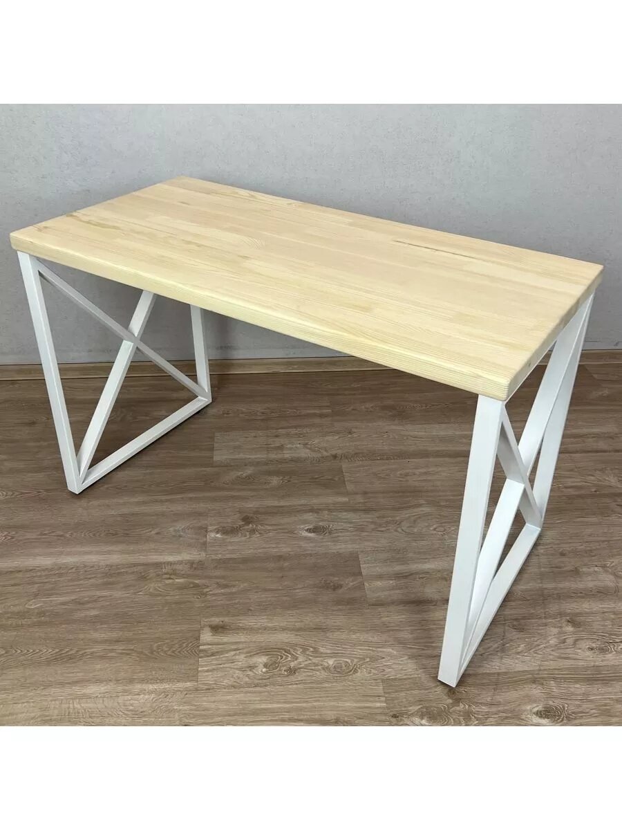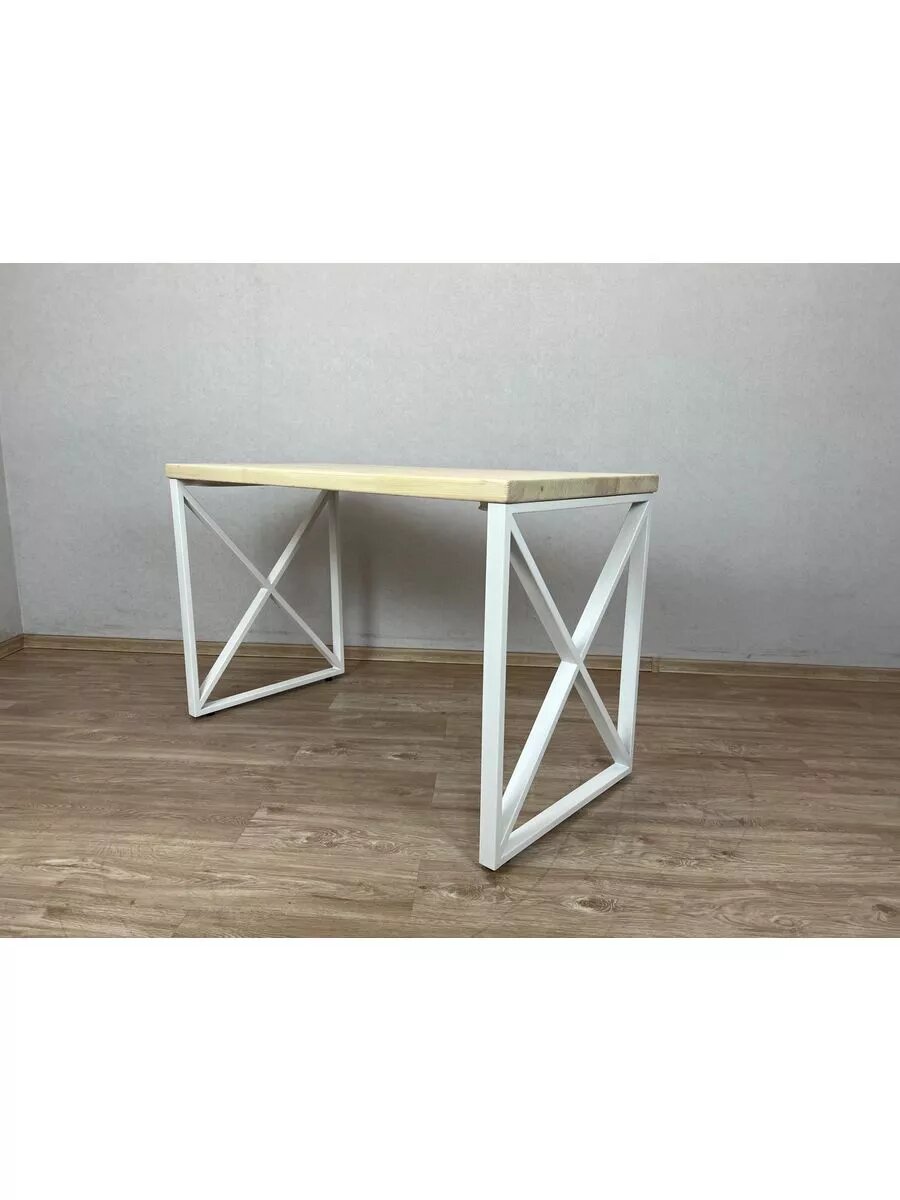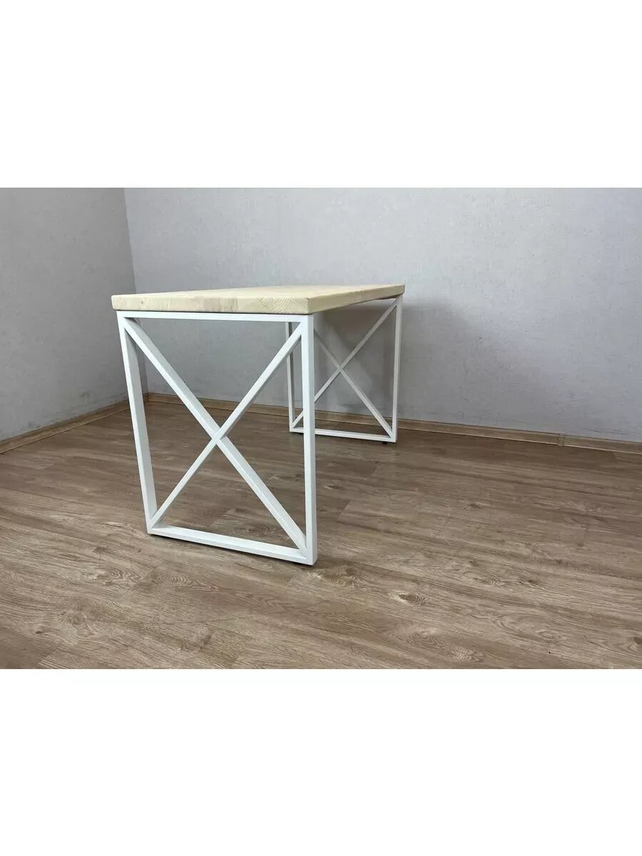Стол кухонный Loft со столешницей из массива сосны 40 мм без шлифовки и покраски, с белыми металлическими крестообразными ножками, 90х60х75 см: сравнение цен, характеристики, фото, актуальное наличие и цены.