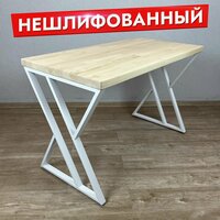 Стол кухонный Loft со столешницей из массива сосны 40 мм без шлифовки и покрытия, с белыми металлическими Z-образными ножками, 120х80х75 см: сравнение цен, характеристики, фото, актуальное наличие и цены.