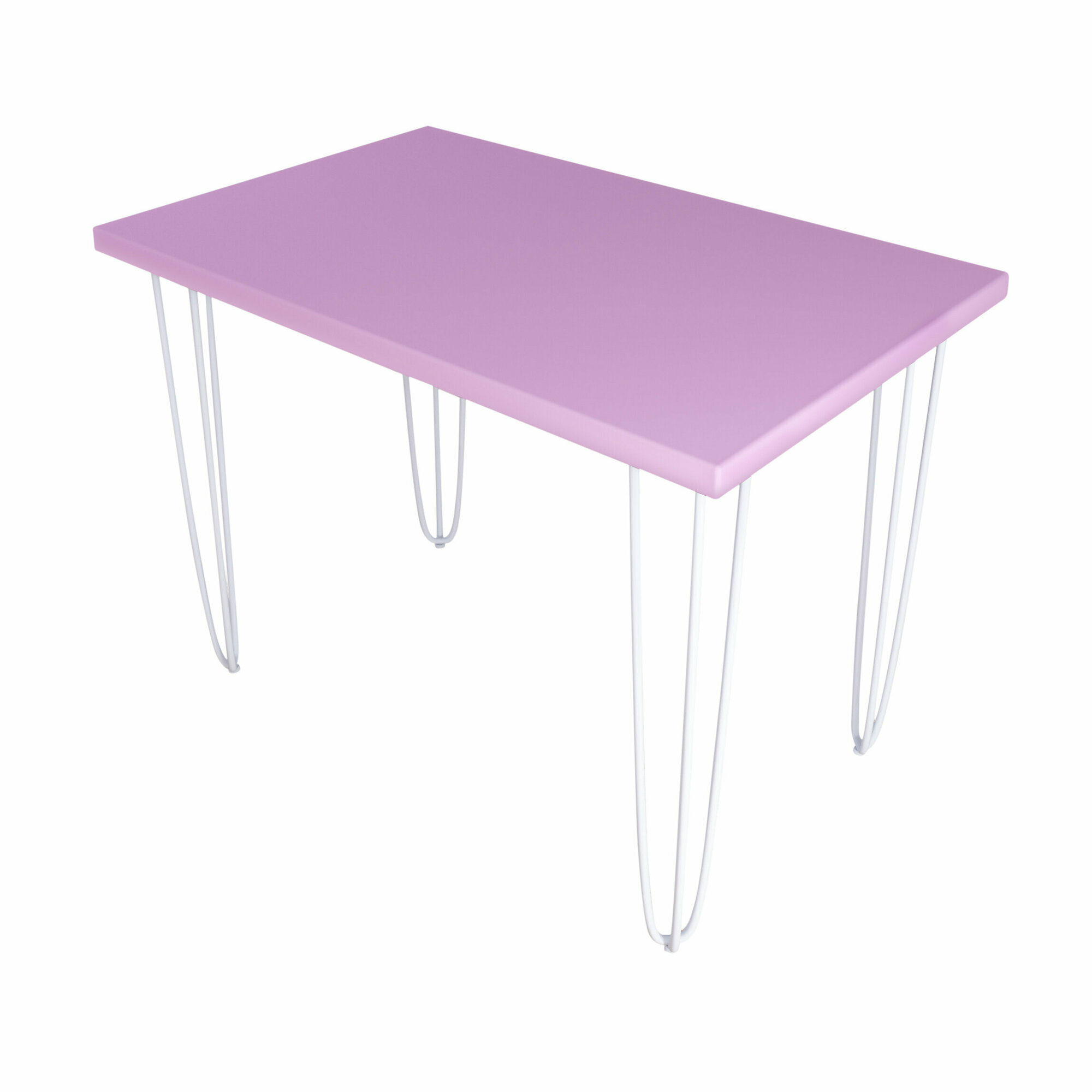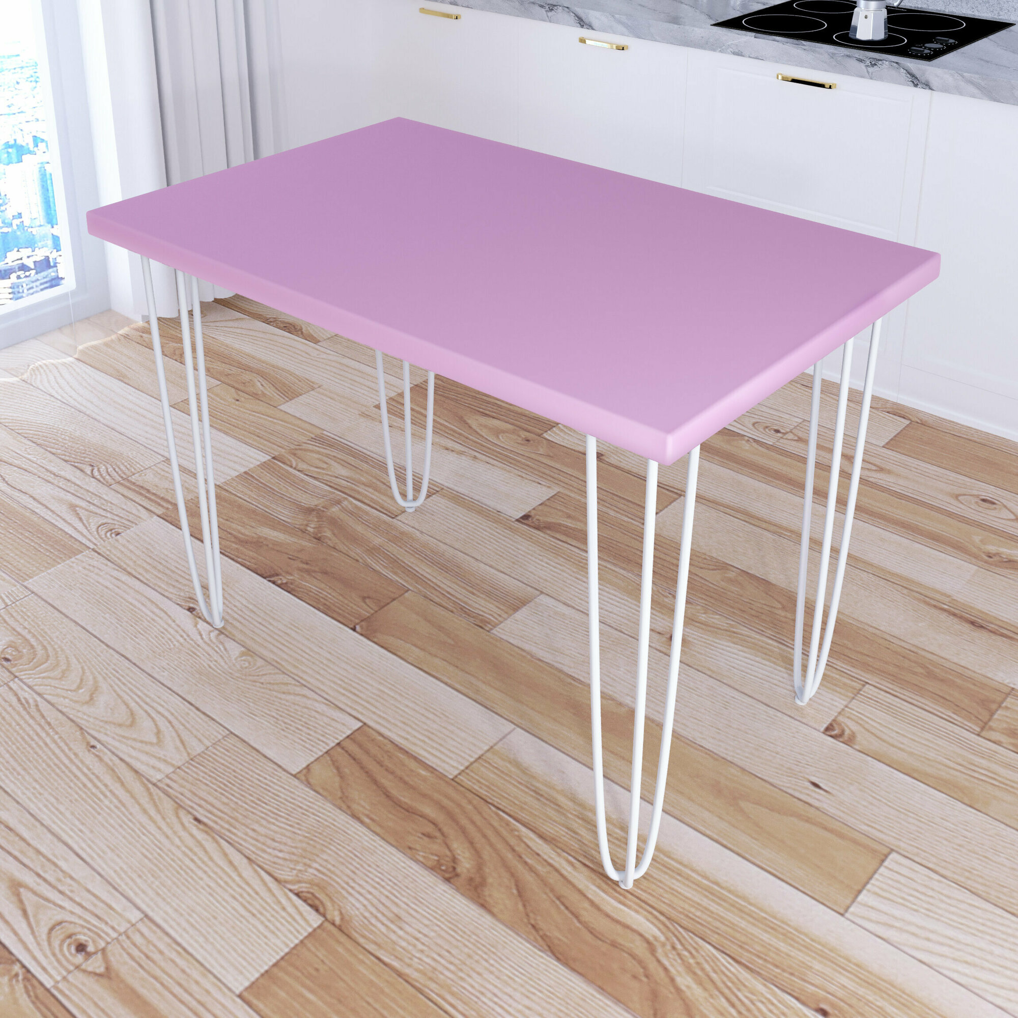 Стол кухонный Loft со столешницей розового цвета из массива сосны 40 мм на белых металлических ножках-шпильках, 120x60х75 см