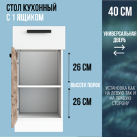 Купить Стол кухонный напольный с 1 ящиком, цвет Дуб Горный / белый, ширина 40 см с доставкой по всей России. Стол кухонный напольный с 1 ящиком, цвет Дуб Горный / белый, ширина 40 см: сравнение цен, характеристики, фото, актуальное наличие и цены.