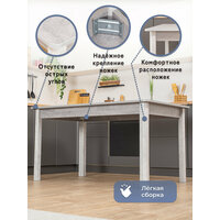 Стол выполнен в скандинавском стиле, который характеризуется светлыми оттенками и минималистичным дизайном. Такой стиль прекрасно сочетается с любым интерьером и добавит света и уютности в помещение. Также идеально подходит для тех, кто ценит минимализм и хочет создать чистоту и порядок в интерьере. Столешница из ЛДСП легко чистится и не требует особого ухода, что экономит время и силы хозяйки. Он легко впишется как в современный, так и в классический стиль, придавая комнате уют и функциональность.