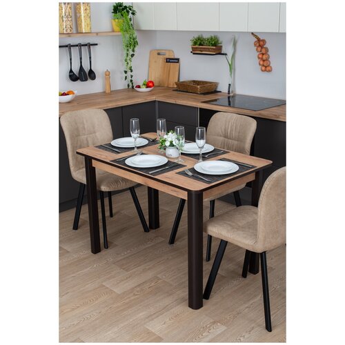 Кухонный стол имеет прямоугольную столешницу размером 110 на 69 сантиметров из ЛДСП которая выдерживает значительную нагрузку и прослужит много лет. Ножки имеют скругление и изготовлены из МДФ, что делает стол легким, но при этом устойчивым и прочным. Стол весит всего 20 килограмм, поэтому его легко перемещать и ставить в любое место.