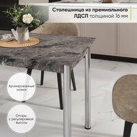 Стол кухонный прямоугольный представляет собой надежное и стильное решение для вашего дома. Изготовленный из ЛДСП с металлическими, хромированными ножками, этот стол не только прост в сборке (требуется всего 3 минуты), но и обладает уникальным дизайном, сочетающим в себе классические и минималистичные элементы. Размеры стола 90х60х75 см делают его идеальным выбором для кухни, дачи или гостиной. Столешница из ЛДСП обеспечивает долговечность и удобство использования. Этот нераздвижной обеденный стол является отличным выбором для тех, кто ценит комфорт, стиль и функциональность. Заводская надёжная упаковка из крепкого, плотного 5-и слойного картона поможет добраться столу до Вас в целости и невредимости. Действует гарантия на кухонные столы от производителя 12 мес.