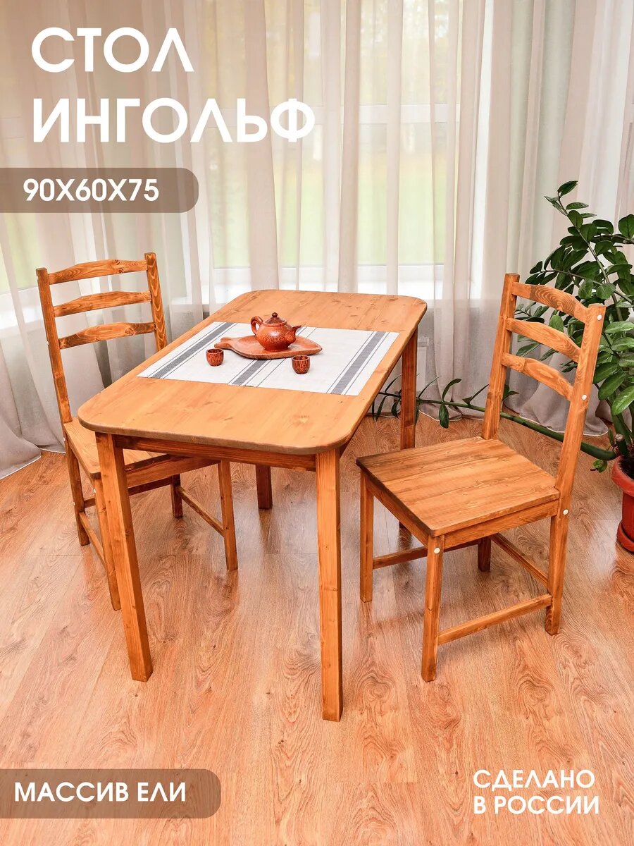 Стол выполнен из натурального дерева, что придает ему особый шарм и экологичность. Массив ели обеспечивает прочность и долговечность конструкции, а также приятный природный аромат.