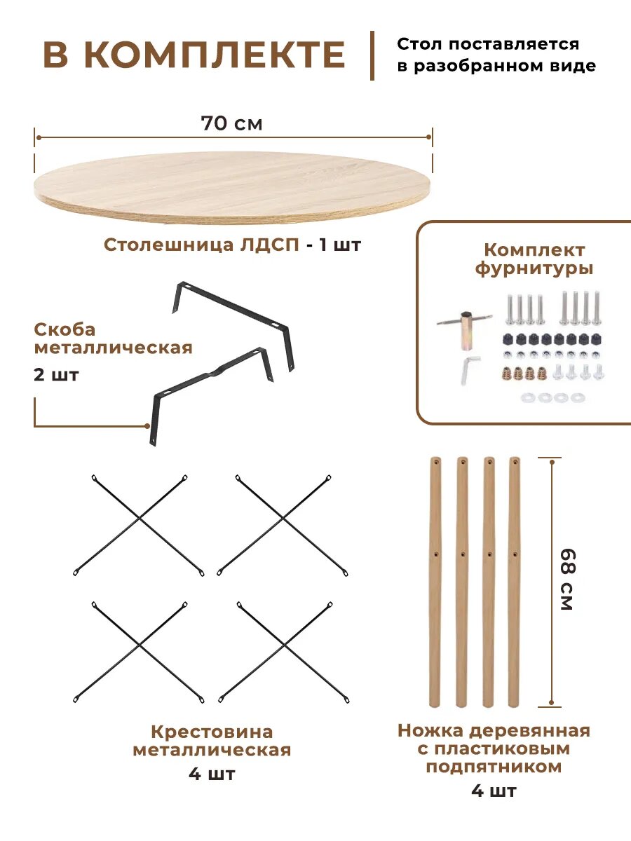 Купить Стол кухонный обеденный круглый 70 см с доставкой по всей России.