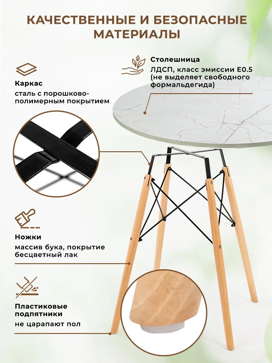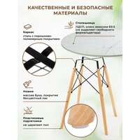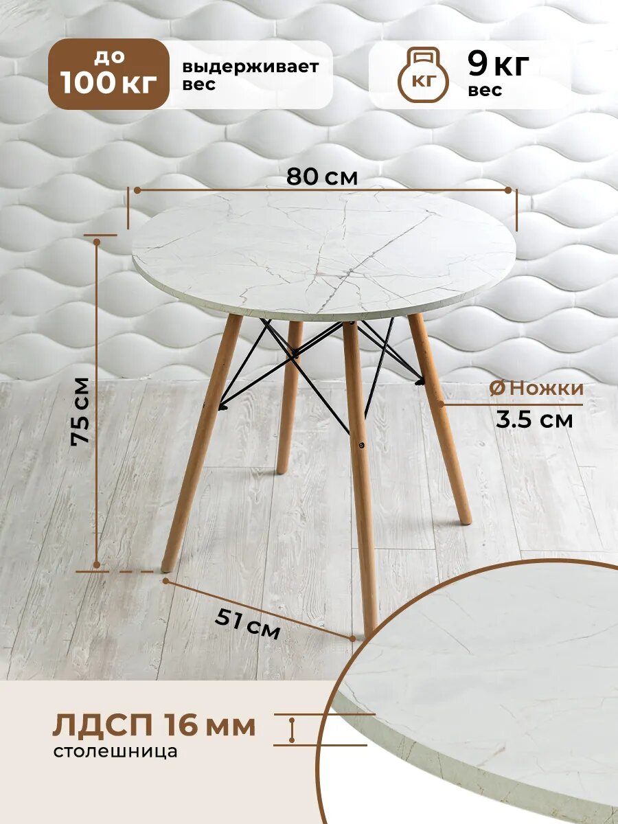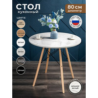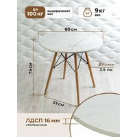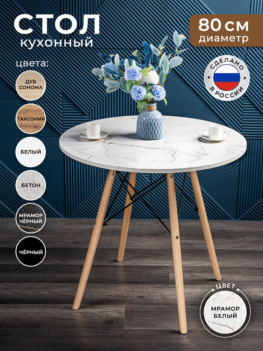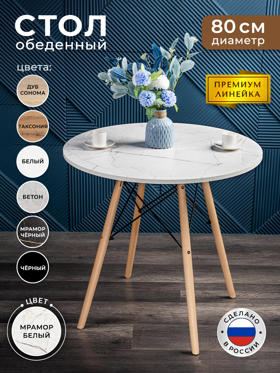 Стол, как правило, представляет собой основной элемент интерьера, который занимает центральное место в комнате. Поэтому важны не только его удобство и функциональность, но и красота, и попадание в стиль. Представляем вам круглый кухонный и обеденный стол Gemlux в скандинавском стиле. Это современная мебель для дома, дачи и сада со столешницей из ЛДСП и изящным подстольем из дерева и металла. Лаконичная форма и простой, но элегантный дизайн гарантируют, что наши столы органично впишутся в интерьер в стиле сканди, минимализм, лофт или модерн и станут украшением вашей кухни, гостиной и столовой, балкона и лоджии. Универсальный предмет мебели также может послужить в качестве удобного рабочего, письменного и компьютерного стола, столика для ПК и ноутбука. Используйте его как школьный и учебный стол, мебель для ребенка в детскую, для школьника и подростка, девочки и мальчика. Он подойдет вам в качестве декоративного чайного и кофейного, сервировочного и журнального мини столика, высокого туалетного столика для косметики в спальне, стола в комнату отдыха для бани и сауны, дачной и садовой мебели для пикника, шашлыков и барбекю. Прочный стол с деревянной столешницей и металлическим каркасом - это идеальное решение для кафе и ресторана, зоны отдыха или клиентской зоны в офисе или салоне красоты.