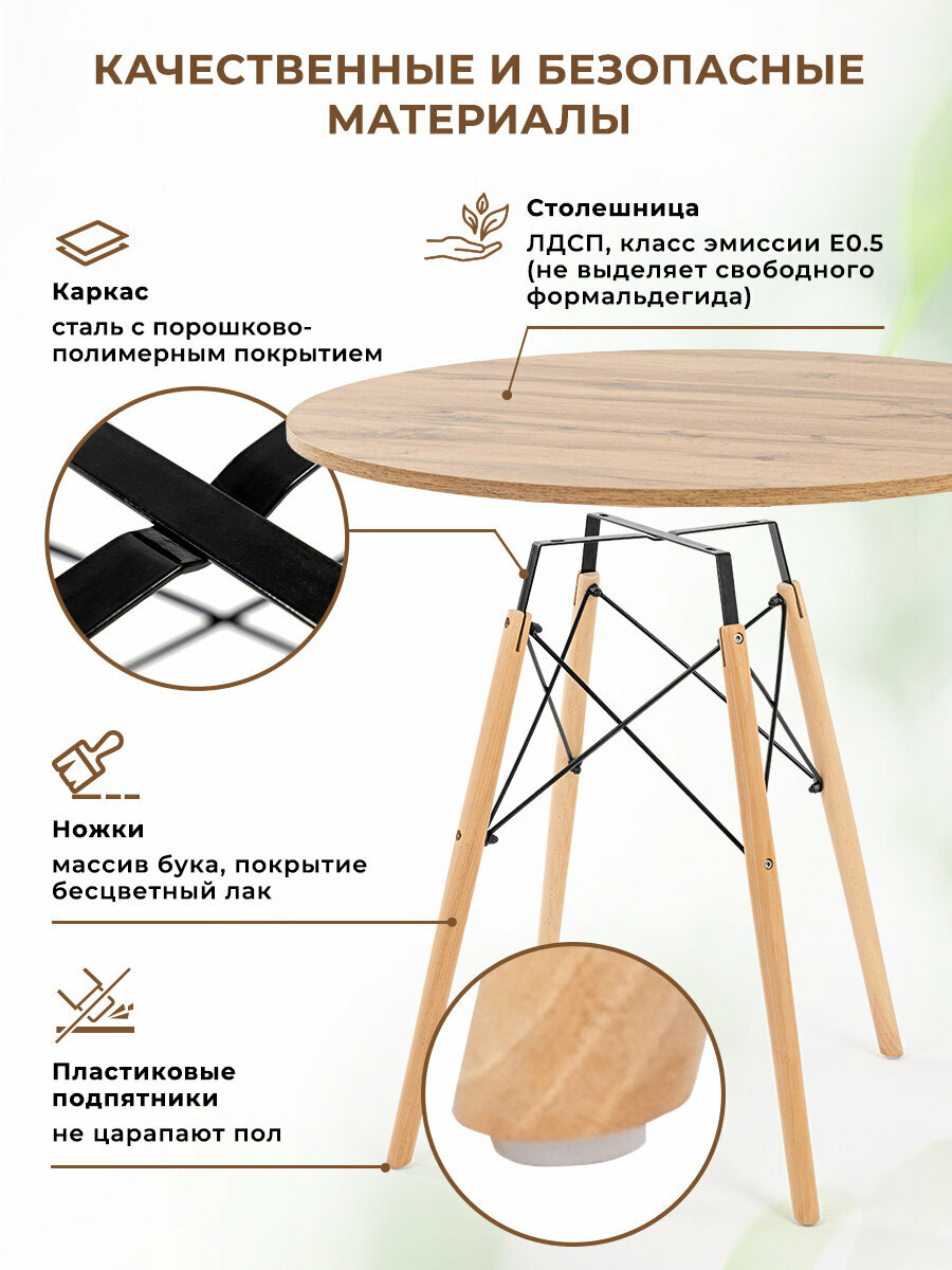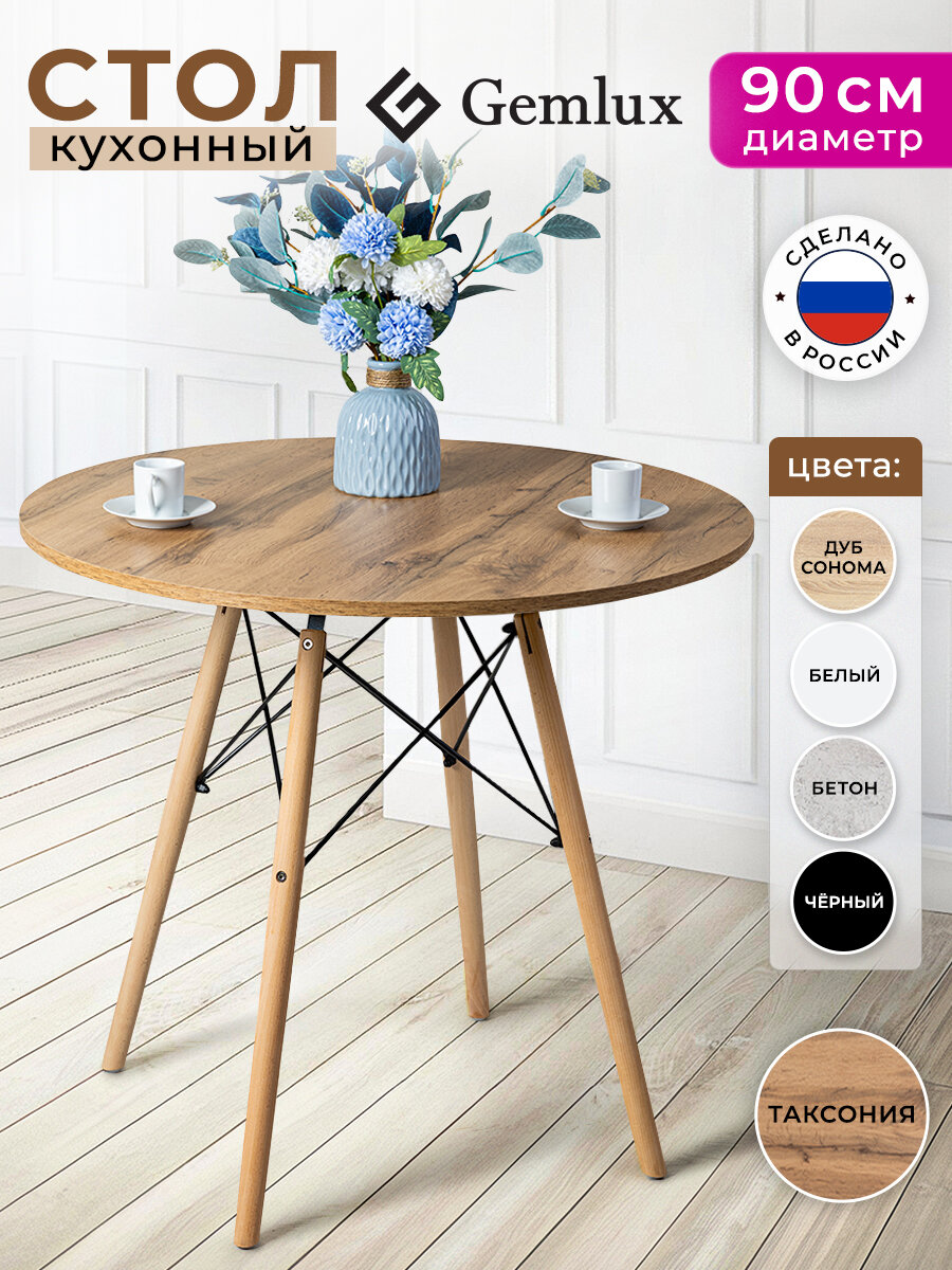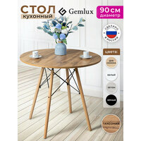 Стол, как правило, представляет собой основной элемент интерьера, который занимает центральное место в комнате. Поэтому важны не только его удобство и функциональность, но и красота, и попадание в стиль. Представляем вам круглый кухонный и обеденный стол Gemlux в скандинавском стиле. Это современная мебель для дома, дачи и сада со столешницей из ЛДСП и изящным подстольем из дерева и металла. Лаконичная форма и простой, но элегантный дизайн гарантируют, что наши столы органично впишутся в интерьер в стиле сканди, минимализм, лофт или модерн и станут украшением вашей кухни, гостиной и столовой, балкона и лоджии. Универсальный предмет мебели также может послужить в качестве удобного рабочего, письменного и компьютерного стола, столика для ПК и ноутбука. Используйте его как школьный и учебный стол, мебель для ребенка в детскую, для школьника и подростка, девочки и мальчика. Он подойдет вам в качестве декоративного чайного и кофейного, сервировочного и журнального мини столика, высокого туалетного столика для косметики в спальне, стола в комнату отдыха для бани и сауны, дачной и садовой мебели для пикника, шашлыков и барбекю. Прочный стол с деревянной столешницей и металлическим каркасом - это идеальное решение для кафе и ресторана, зоны отдыха или клиентской зоны в офисе или салоне красоты.