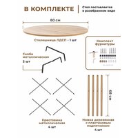 Высота стола универсальная – 75 см, к нему подходит большинство стандартных стульев и кресел. Не регулируемые пластиковые подпятники не царапают пол и позволяют свободно передвигать стол по комнате. Круглая столешница диаметром 80 см предоставляет достаточно места для работы и в то же время делает стол компактным, подходящим для ограниченных пространств.