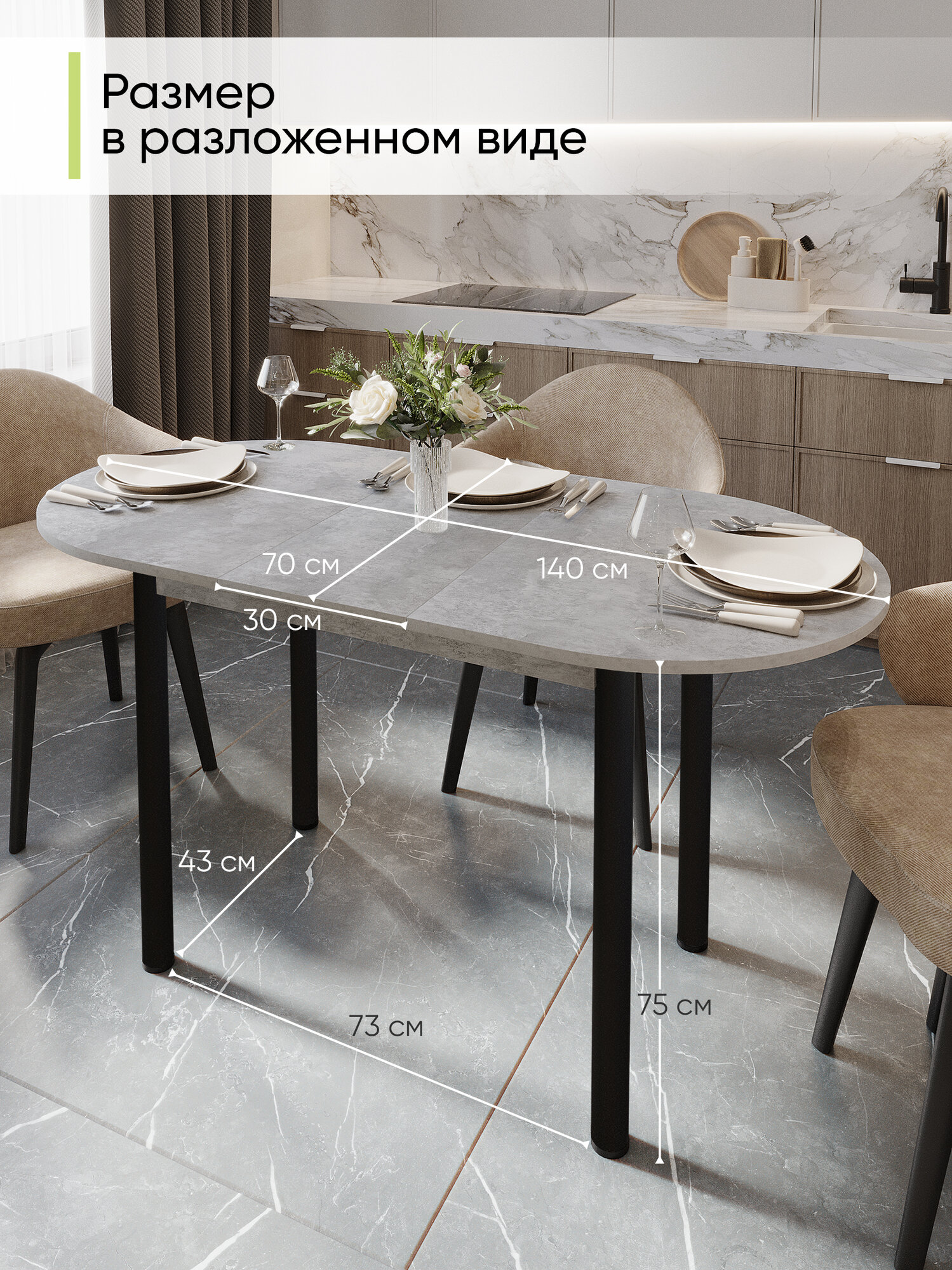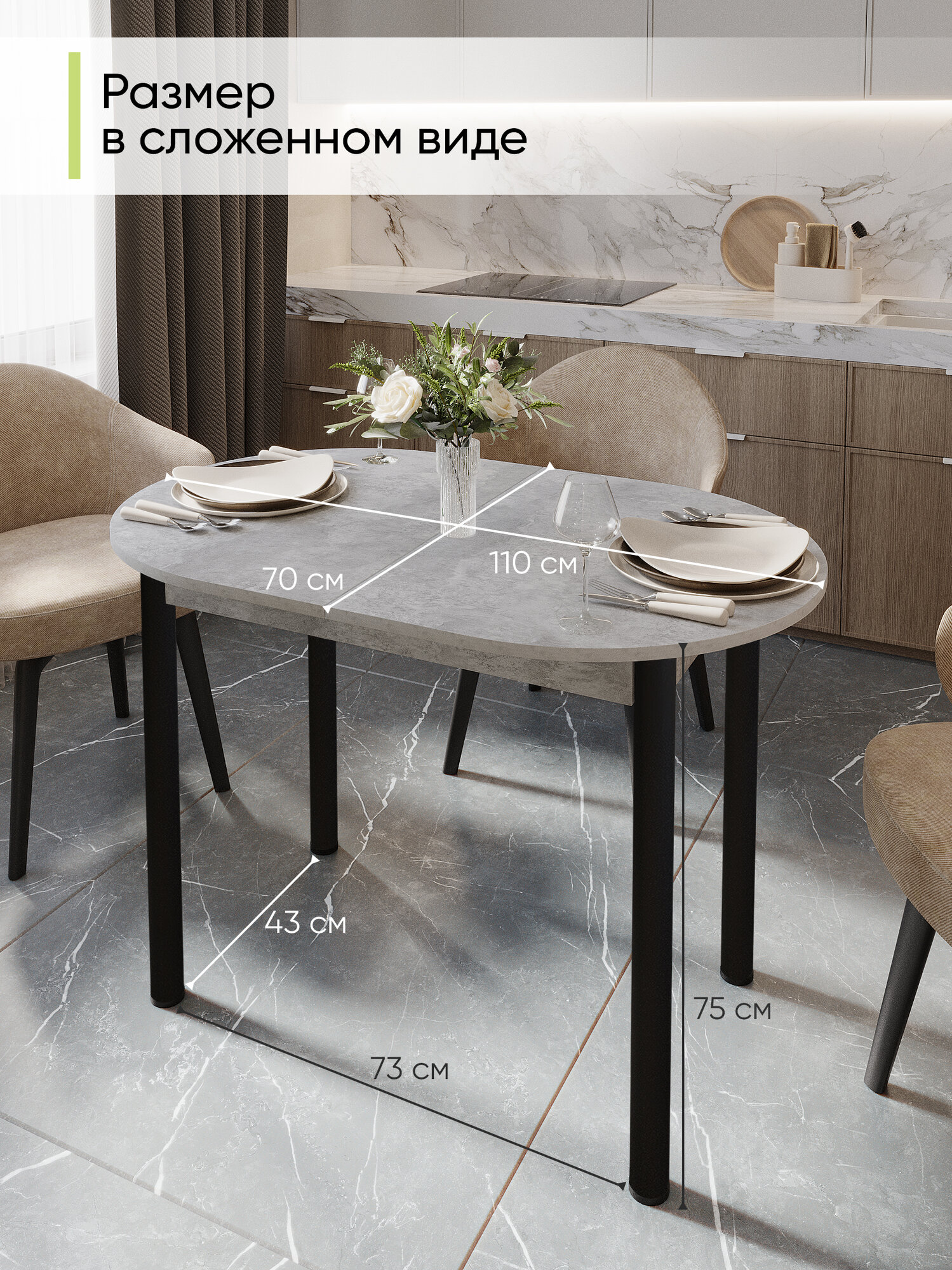 Стол кухонный обеденный овальный раздвижной, Цемент светлый, 110-140х70х75 см: сравнение цен, характеристики, фото, актуальное наличие и цены.