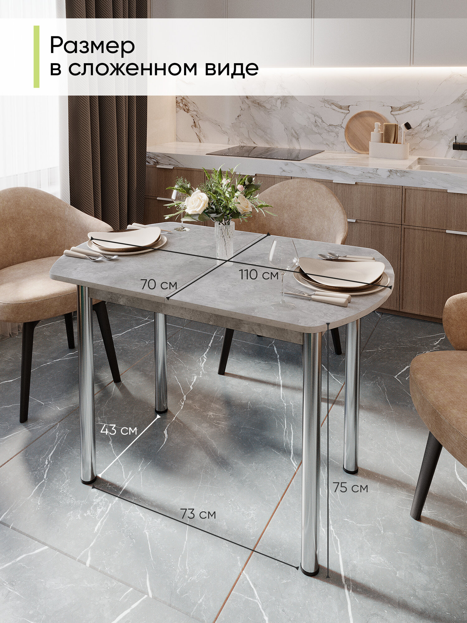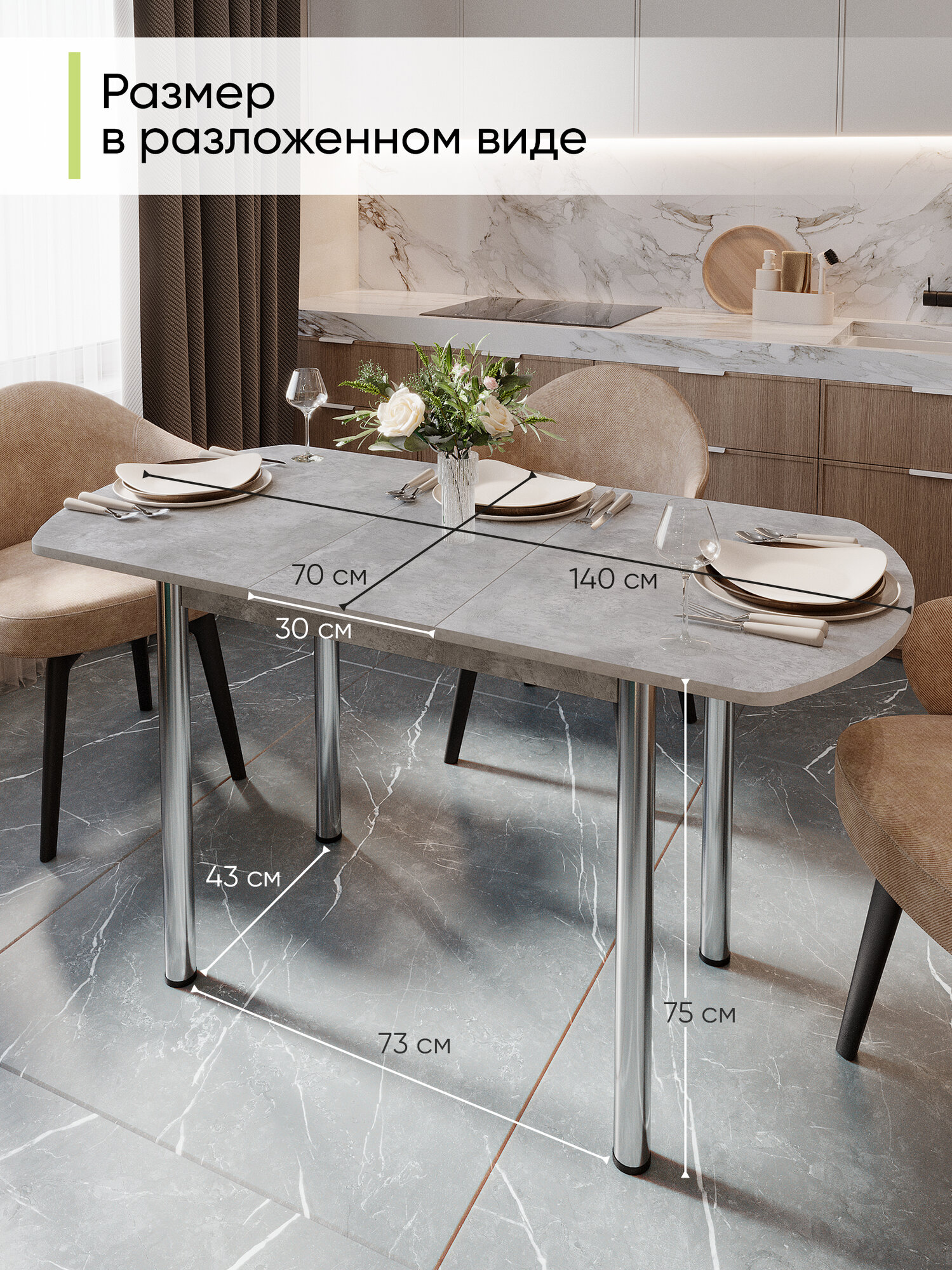 Стол кухонный обеденный раздвижной полу-овальный Европейский, Цемент светлый, (110-140х70х75 см ): сравнение цен, характеристики, фото, актуальное наличие и цены.