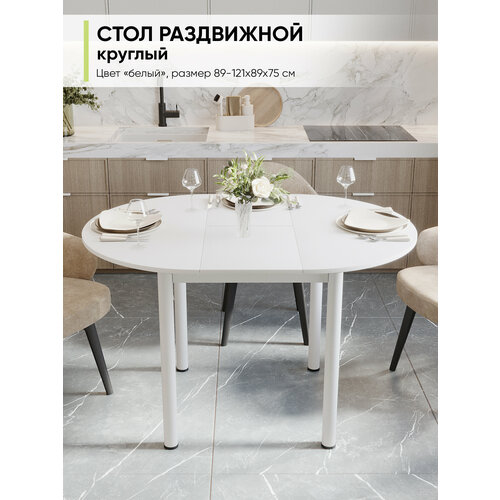 Стол кухонный обеденный раздвижной Круглый, Белый, 89-121х89х75 см: сравнение цен, характеристики, фото, актуальное наличие и цены.