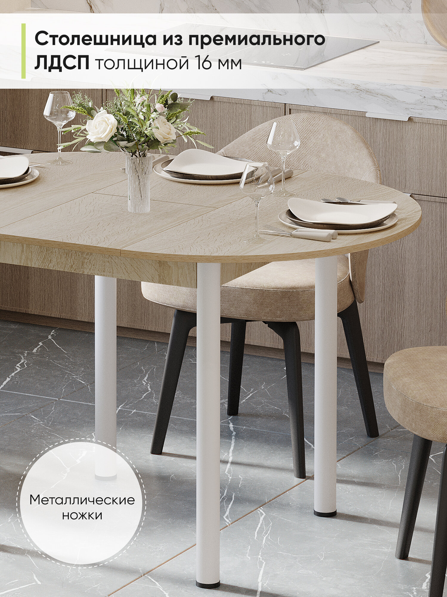 Кухонный стол раздвижной круглый от мебельной фабрики "Алиса" - популярная и гармоничная модель. Этот стол раздвижной обеденный отлично впишется в любой интерьер и придаст ему уюта. Эргономичная круглая форма, белые ножки - опоры, качественная фурнитура выгодно выделяют этот круглый раскладной стол среди других. Плотная 1 мм ПВХ кромка обеспечит защитой торец столешницы.