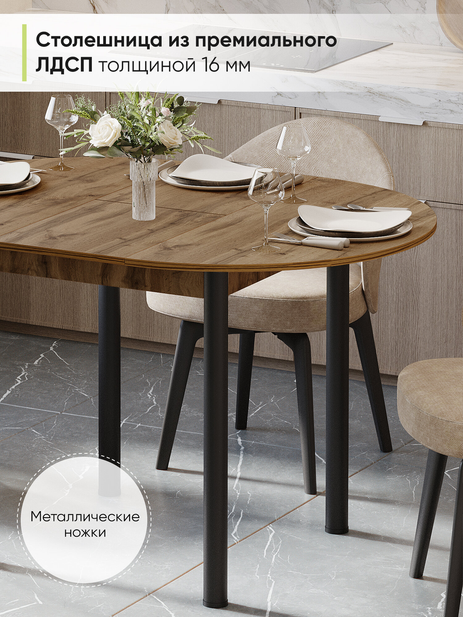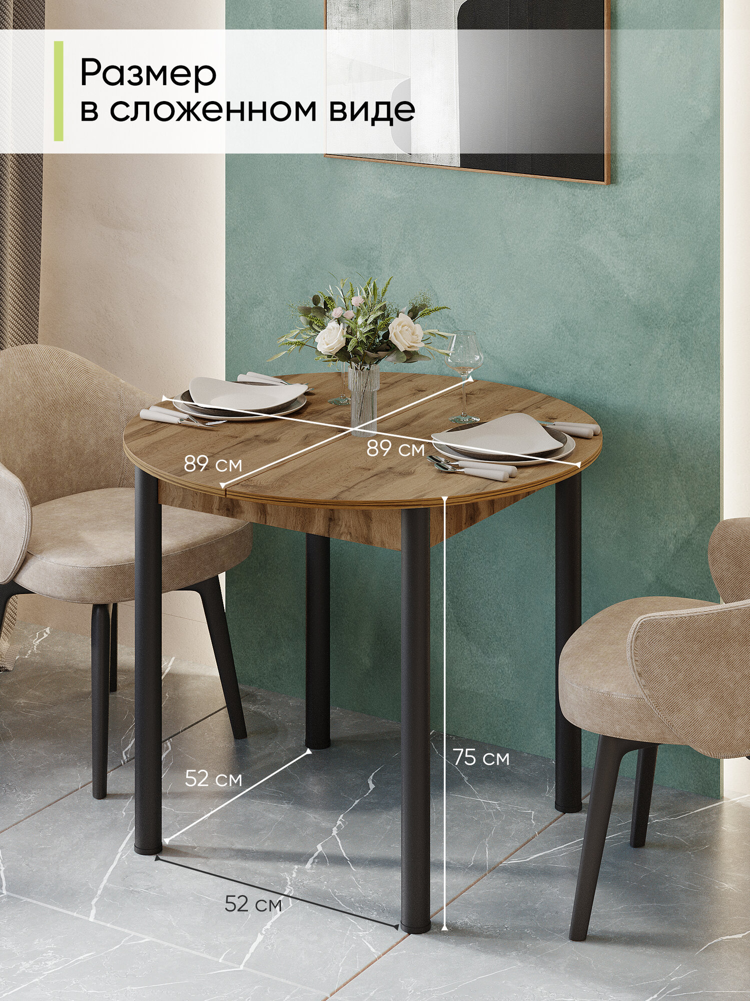 Стол кухонный обеденный раздвижной Круглый, Дуб вотан, 89-121х89х75 см: сравнение цен, характеристики, фото, актуальное наличие и цены.