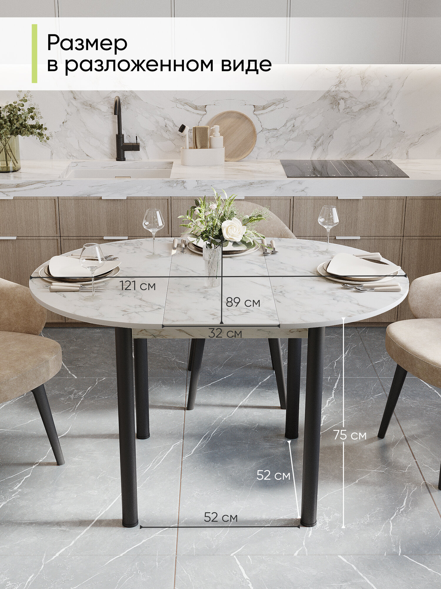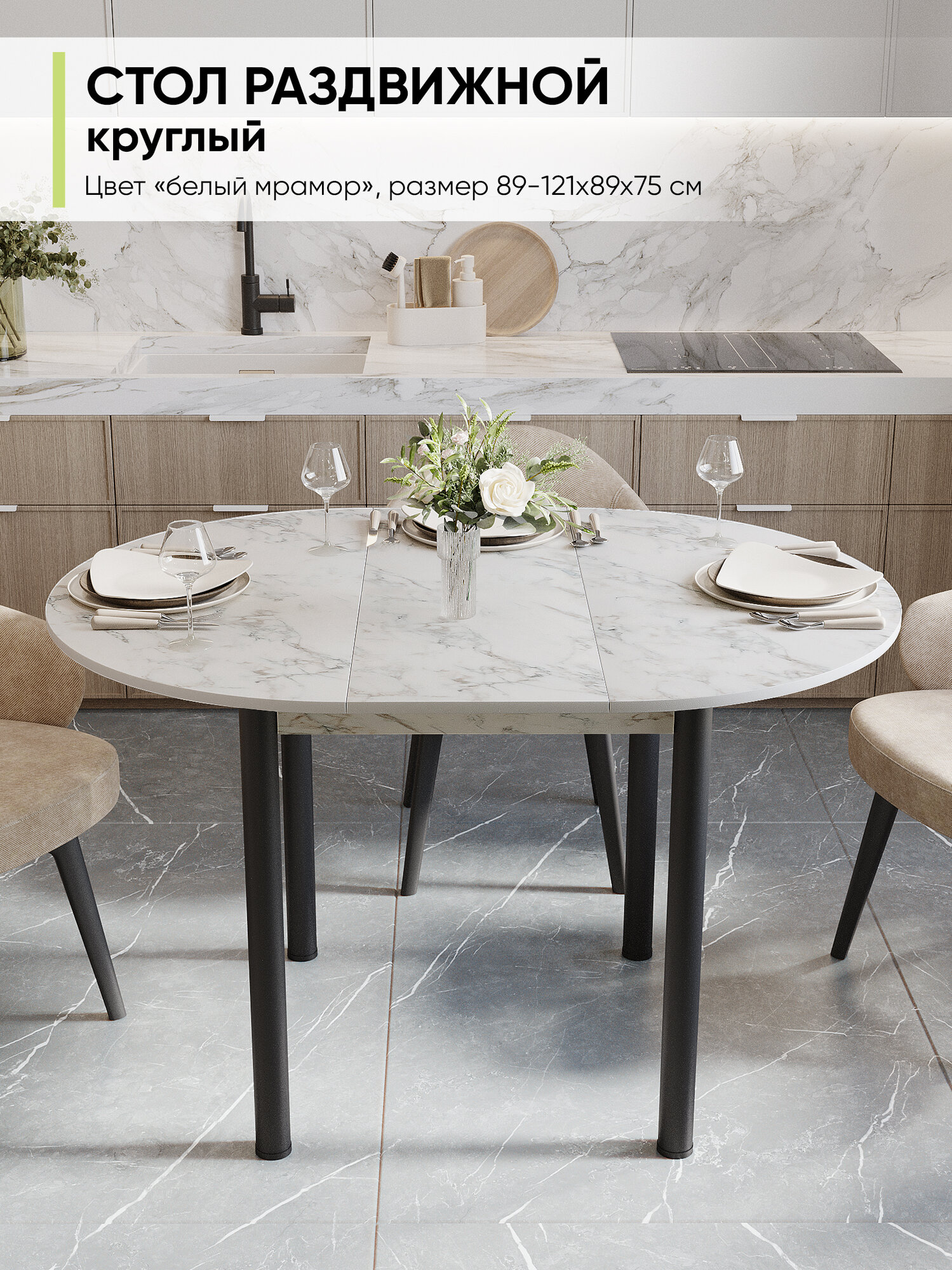 Стол кухонный обеденный раздвижной Круглый, Сабия, 89-121х89х75 см: сравнение цен, характеристики, фото, актуальное наличие и цены.