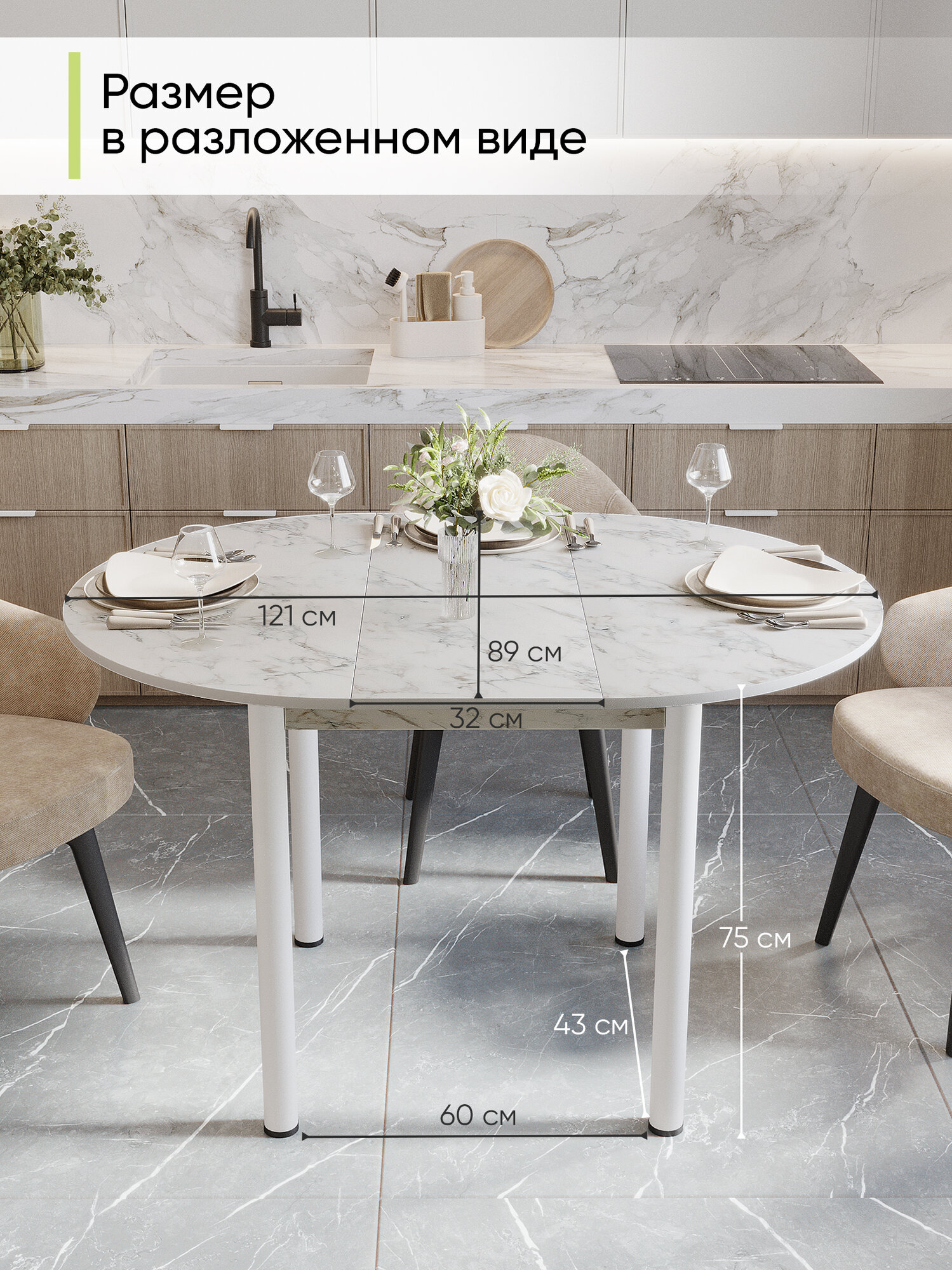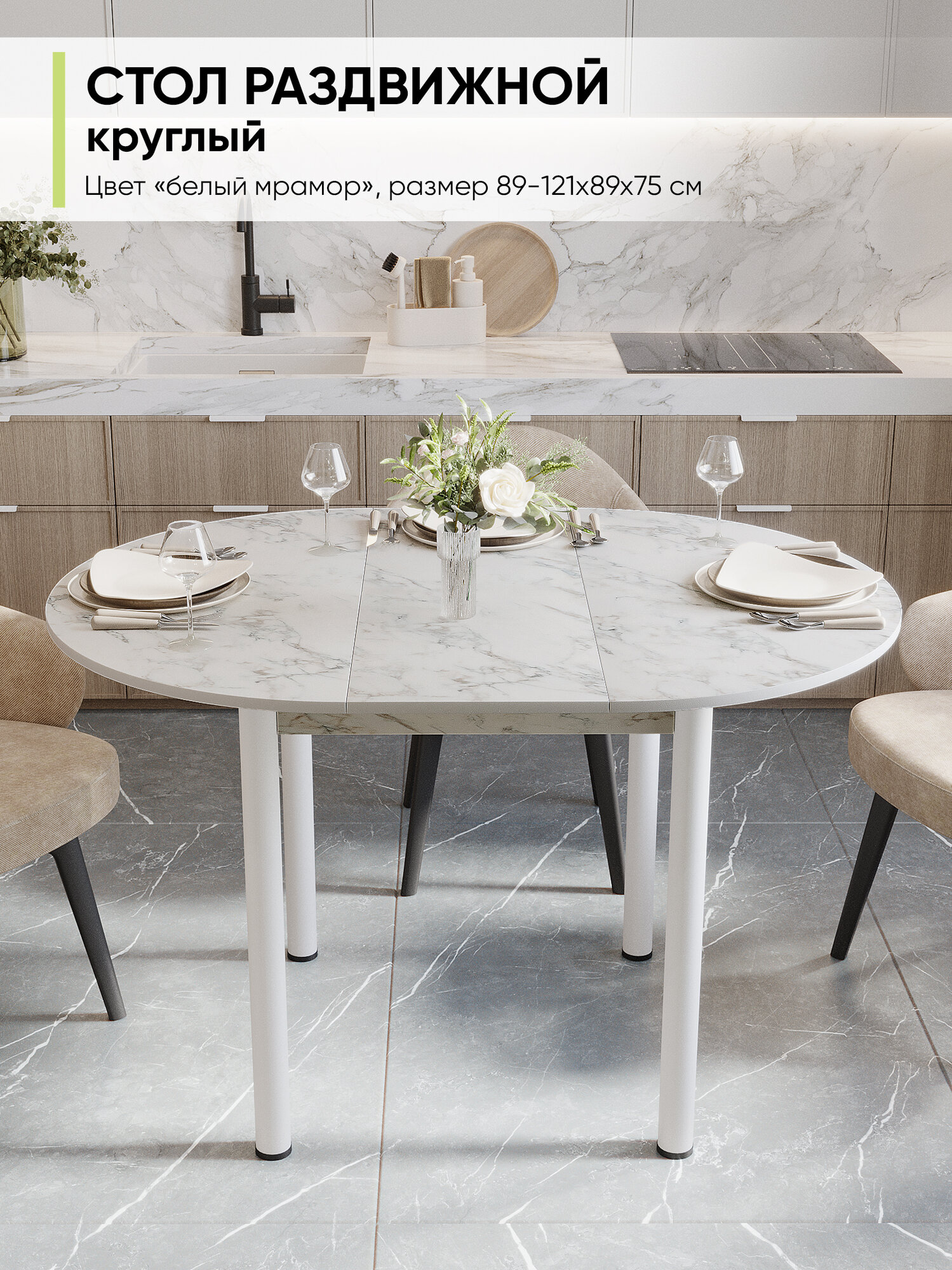 Стол кухонный обеденный раздвижной Круглый, Сабия, 89-121х89х75 см: сравнение цен, характеристики, фото, актуальное наличие и цены.