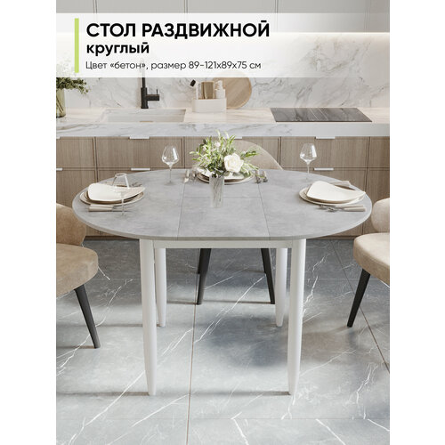 Стол кухонный обеденный раздвижной круглый, Цемент светлый, 89-121х89х74 см: сравнение цен, характеристики, фото, актуальное наличие и цены.