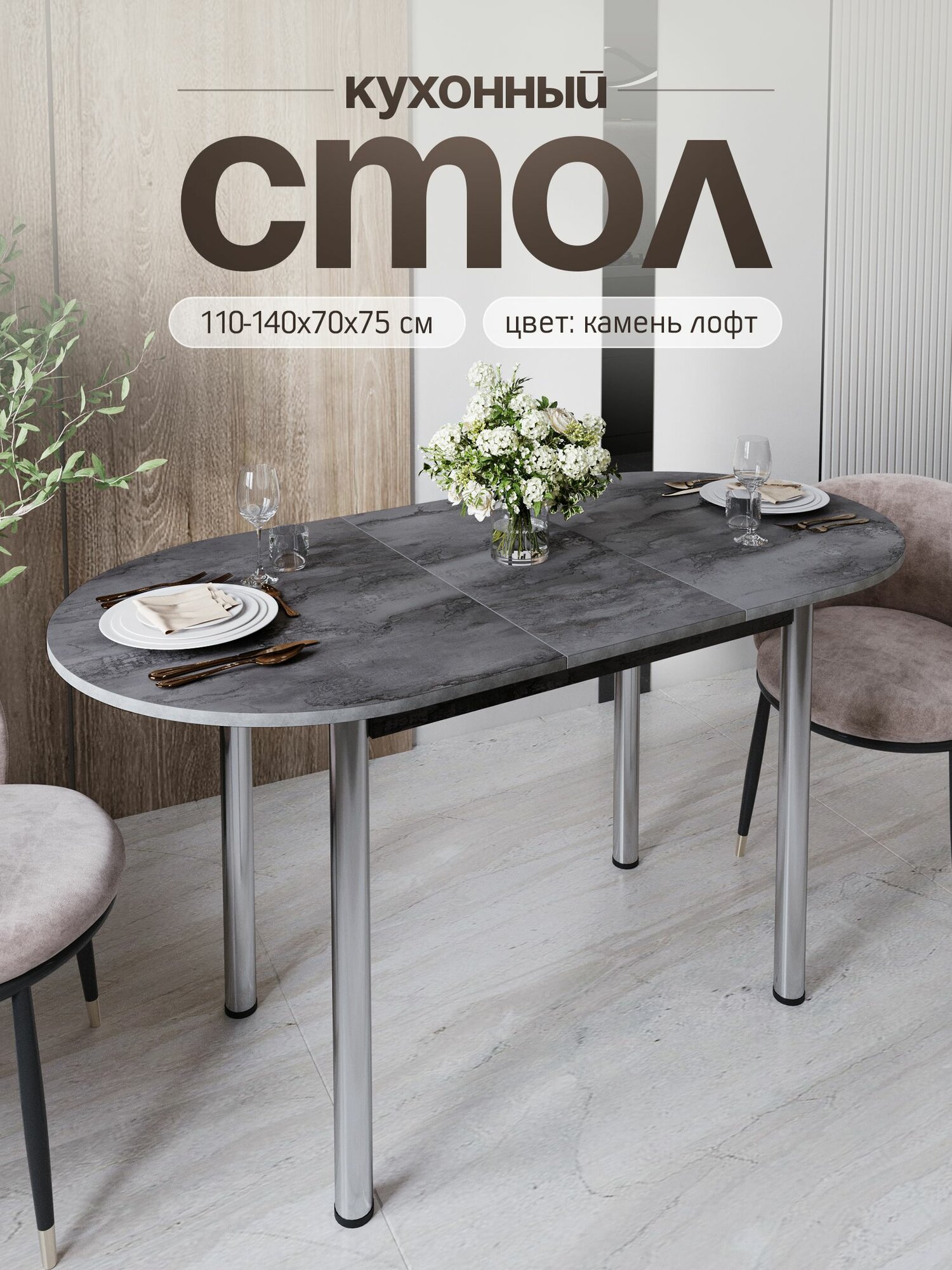 Стол кухонный обеденный раздвижной овальный, Камень лофт, 110-140х70х75 см: сравнение цен, характеристики, фото, актуальное наличие и цены.