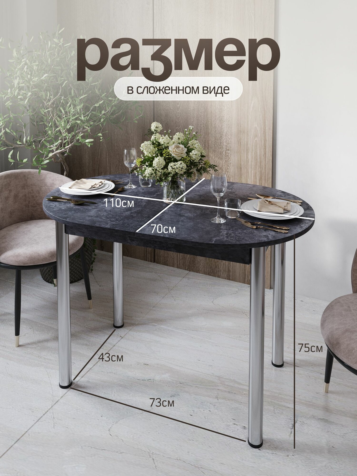 Стол кухонный обеденный раздвижной овальный, Тёмный цемент, 110-140х70х75 см: сравнение цен, характеристики, фото, актуальное наличие и цены.
