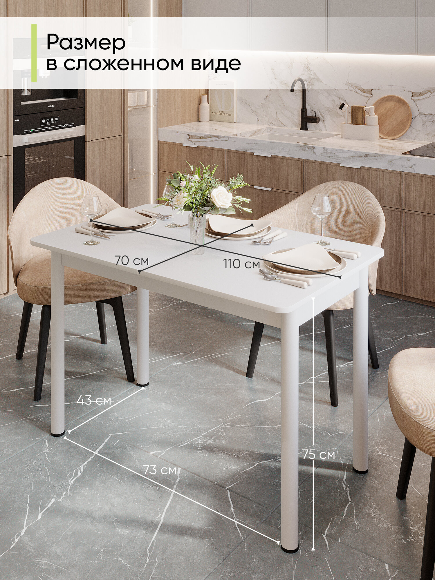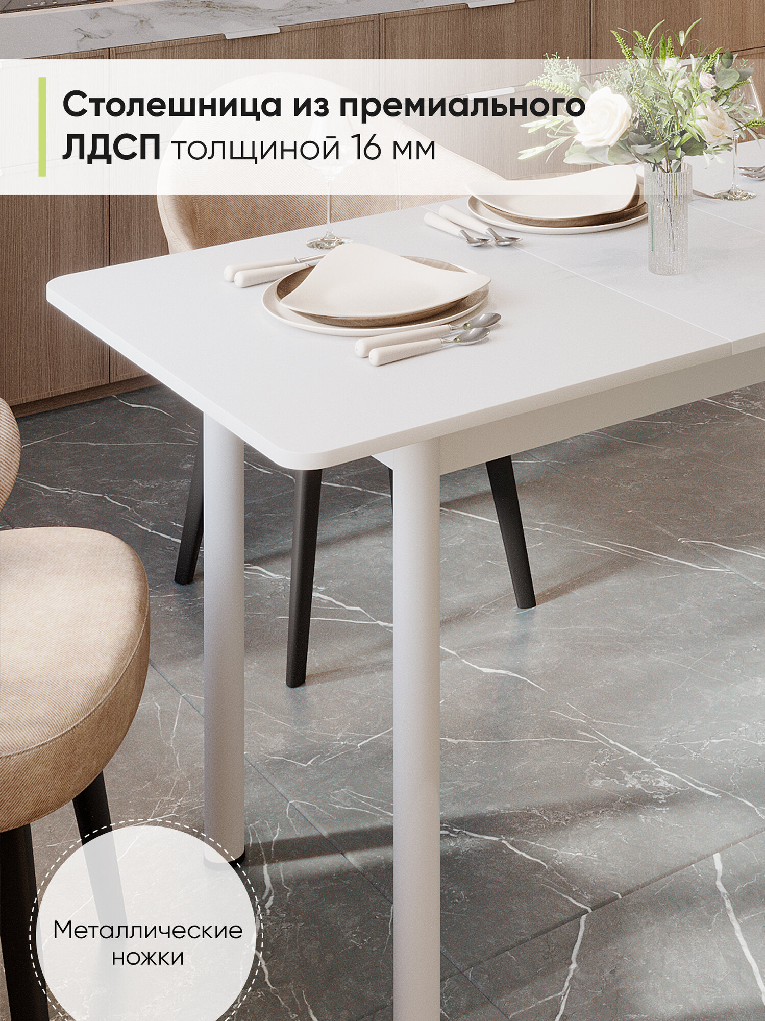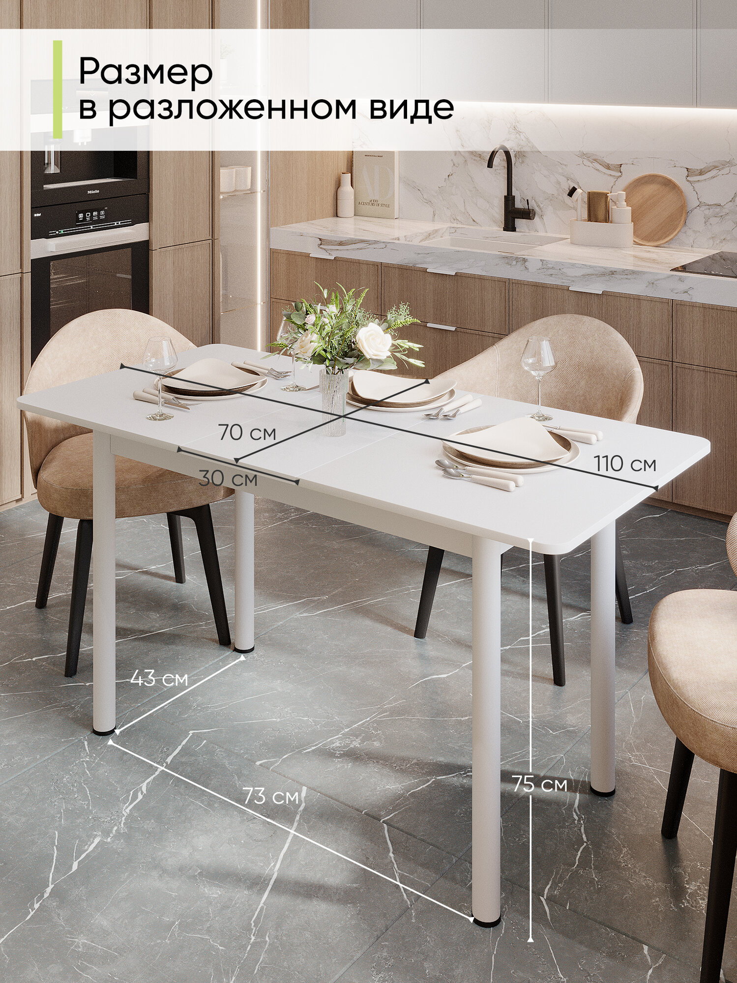 Стол кухонный обеденный раздвижной Прямоугольный, Белый, 110-140х70х75 см: сравнение цен, характеристики, фото, актуальное наличие и цены.