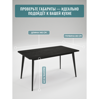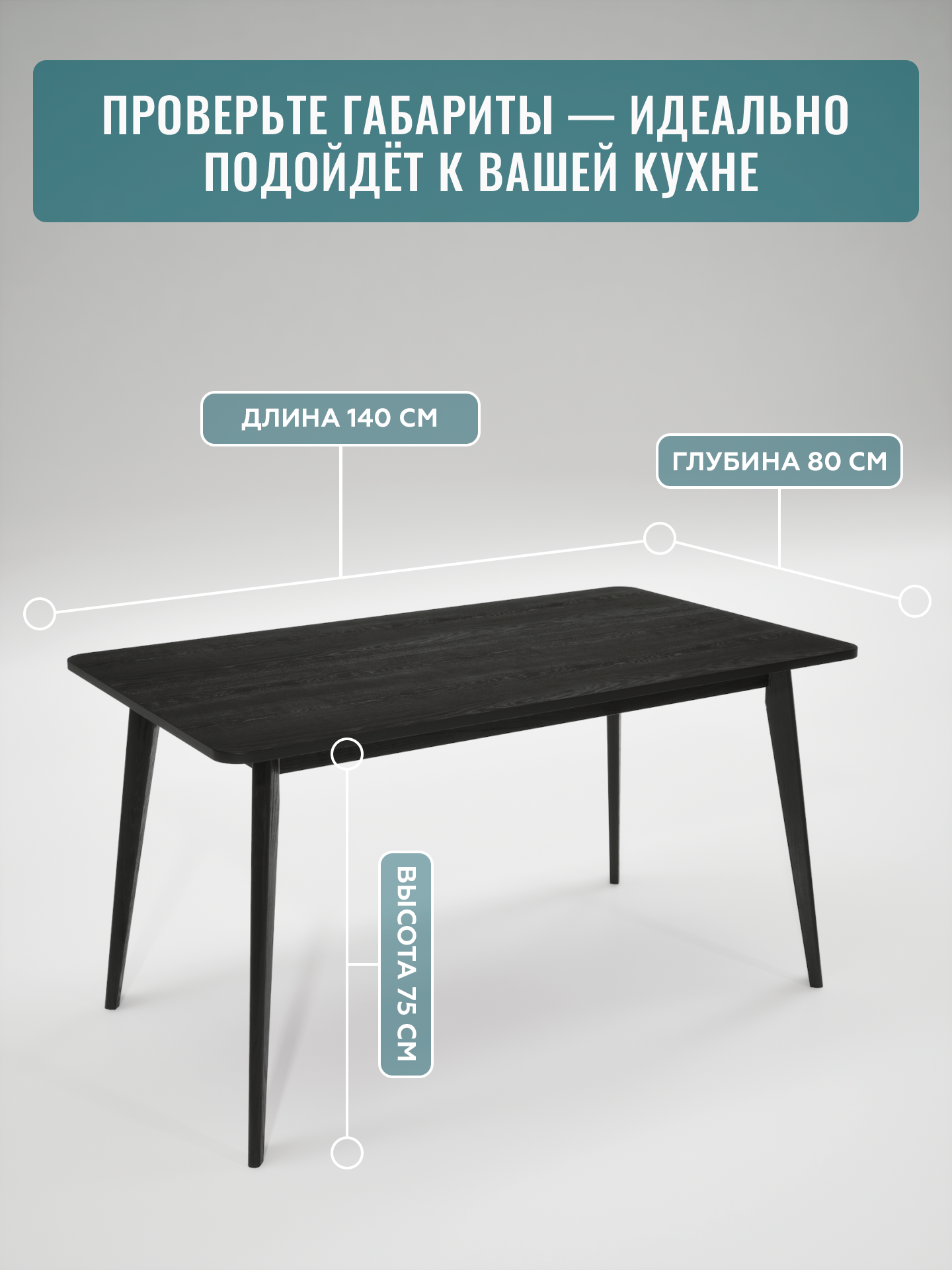 Прямоугольный стол со скруглёнными углами для кухни и гостиной. Актуальный «чёрный дуб» подчёркивает современный интерьер, а тонкие кромки и лёгкие опоры добавляют визуальной лёгкости. Стол устойчивый, не шатается, рассчитан на ежедневную нагрузку.