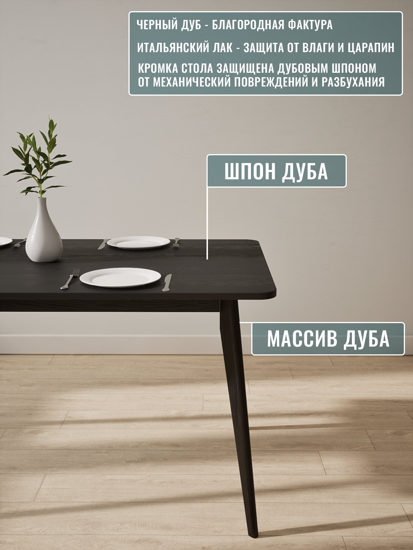 Обеденный стол DUBsun Black 140 — шпон и массив дуба, чёрный